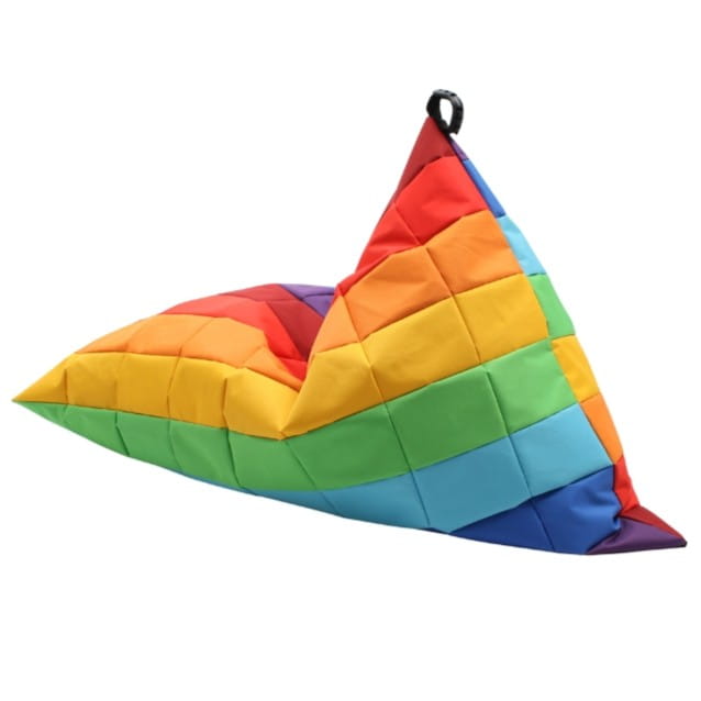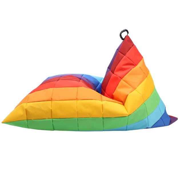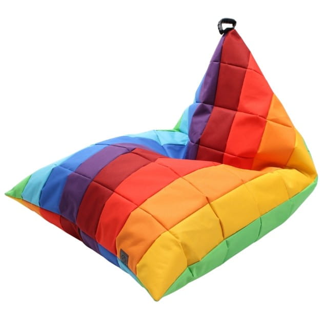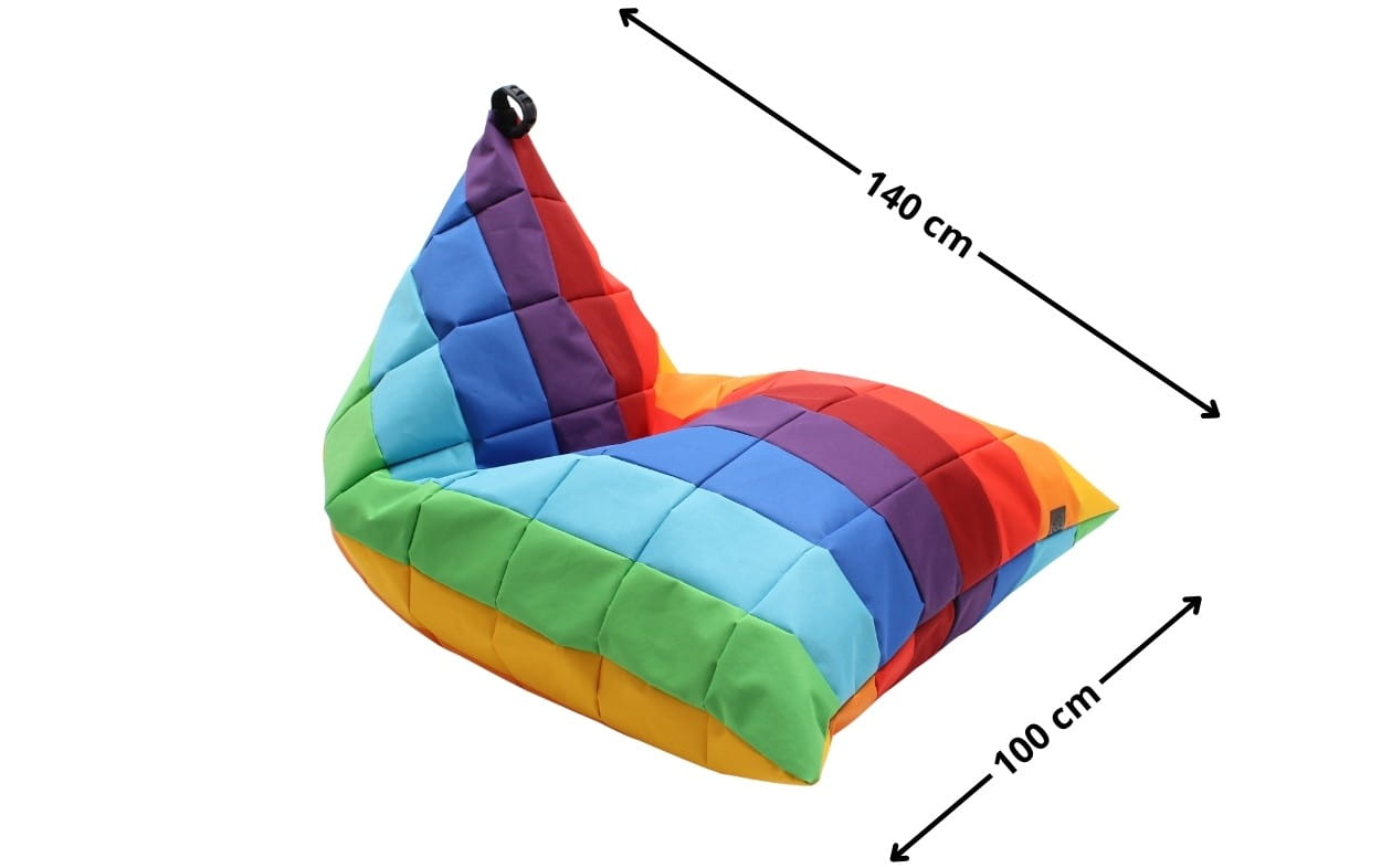 Puf OVNI LONG ZERO WASTE XL tęcza to propozycja dla osób, które chcą połączyć wygodę z odważnym akcentem kolorystycznym. Ta duża pufa do siedzenia i leżenia świetnie sprawdzi się jako domowa strefa relaksu, a dzięki wodoodpornej tkaninie możesz korzystać z niej również na zewnątrz.