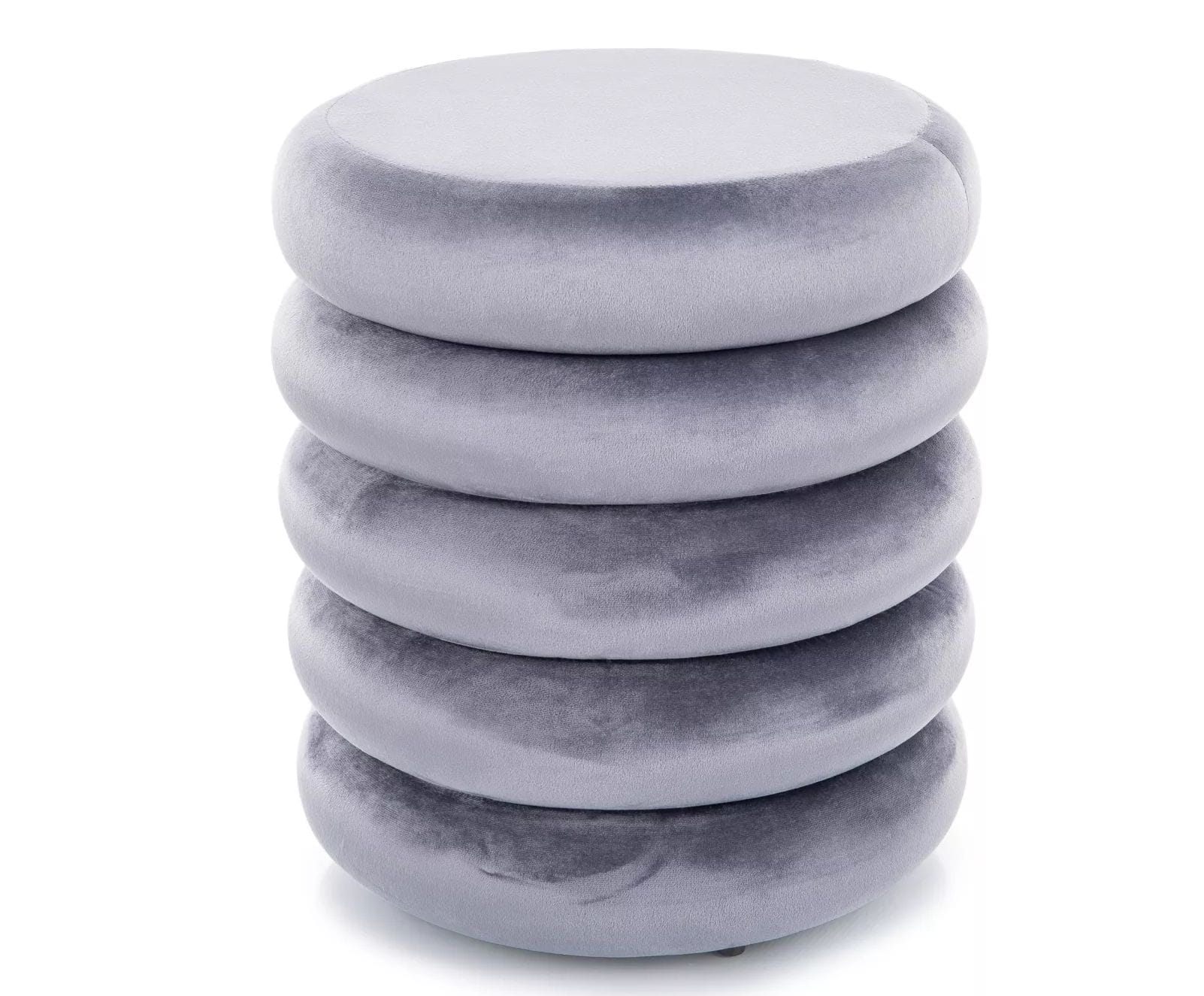 Szara pufa CALVI VELVET to doskonałe połączenie funkcji i stylu. Obita aksamitną tkaniną, przyciąga wzrok subtelnym połyskiem i miękkością. Jej kompaktowa, okrągła forma sprawia, że idealnie wpasuje się w przestrzeń każdego wnętrza – od salonu po przedpokój.