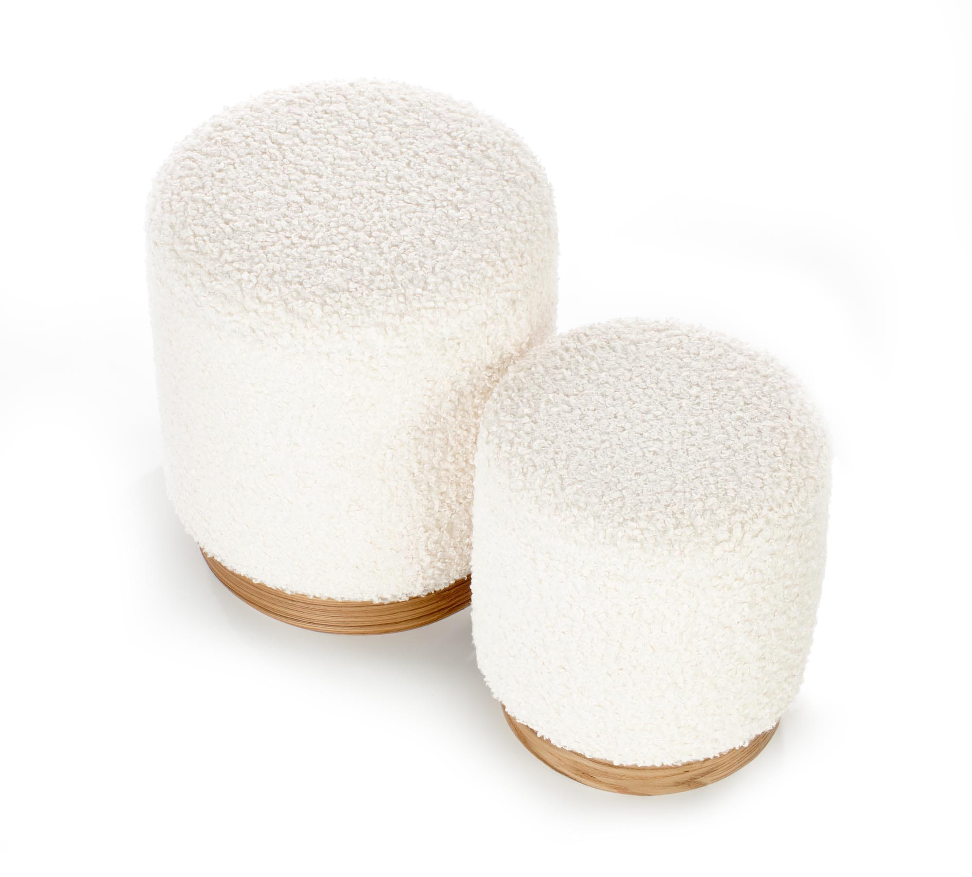 - Nowoczesny zestaw 2 puf o różnych rozmiarach – większa i mniejsza