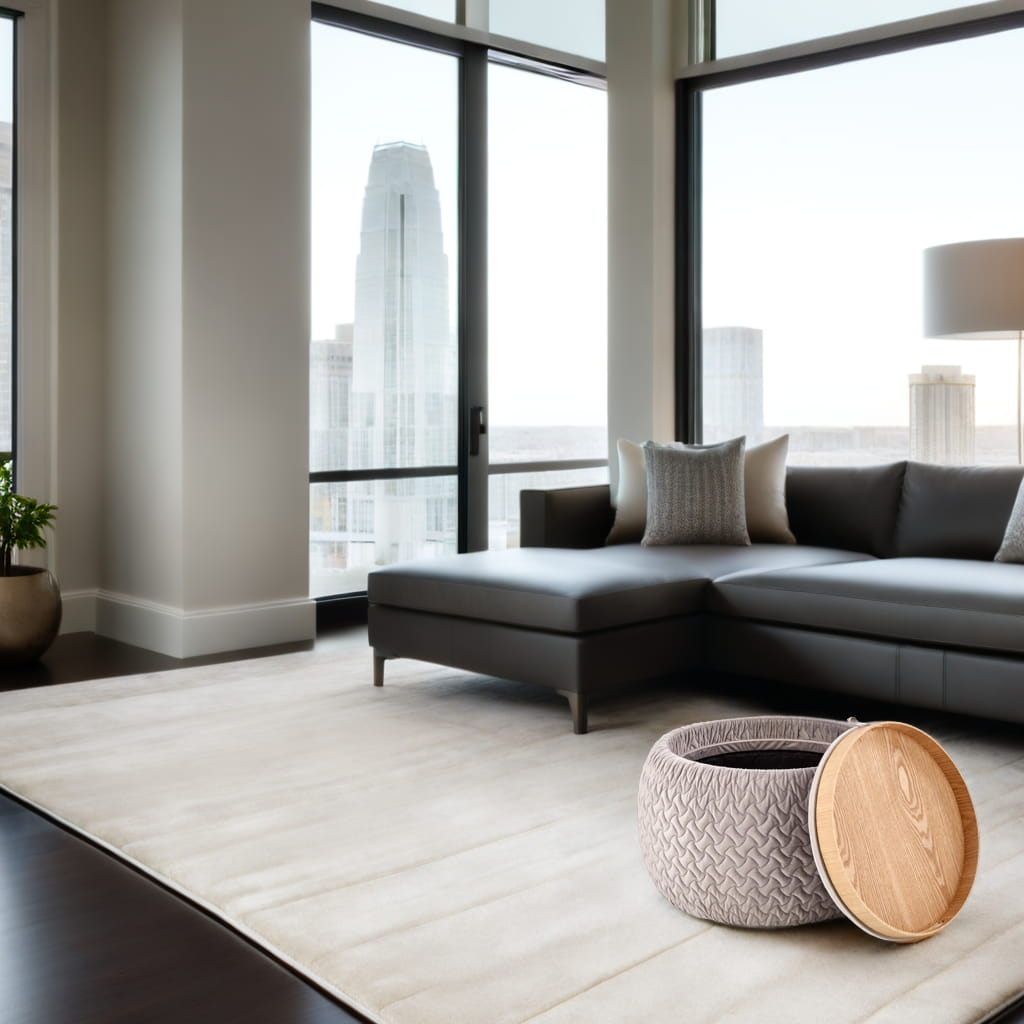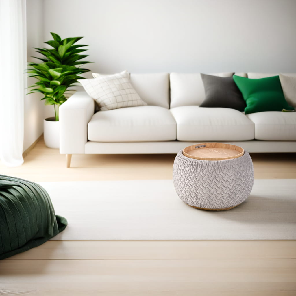 ✨ Szara pufa BONO z funkcją pojemnika i stolika – praktyczna elegancja