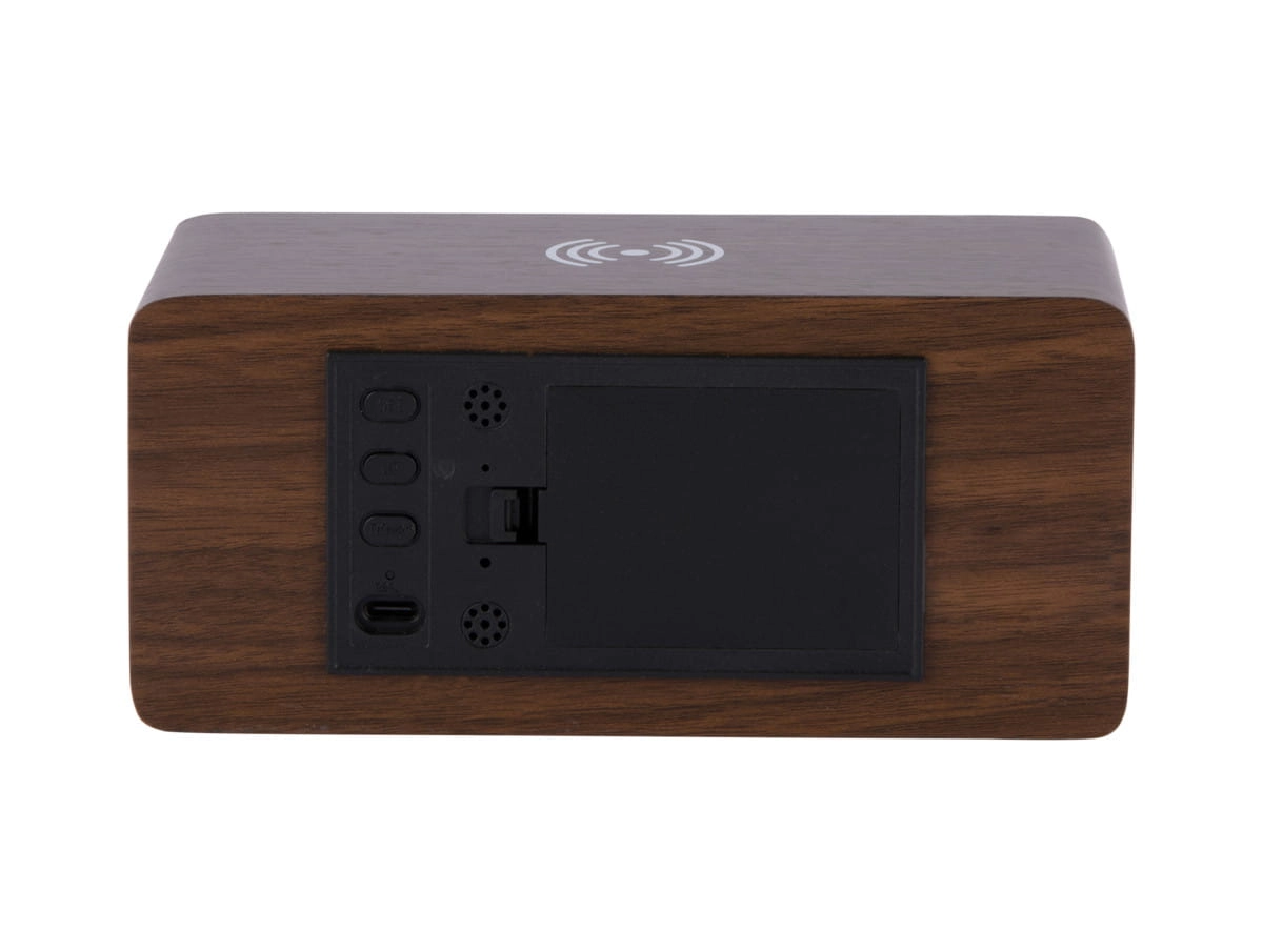 RETRO budzik LED z ładowarką drewniany ciemny brąz