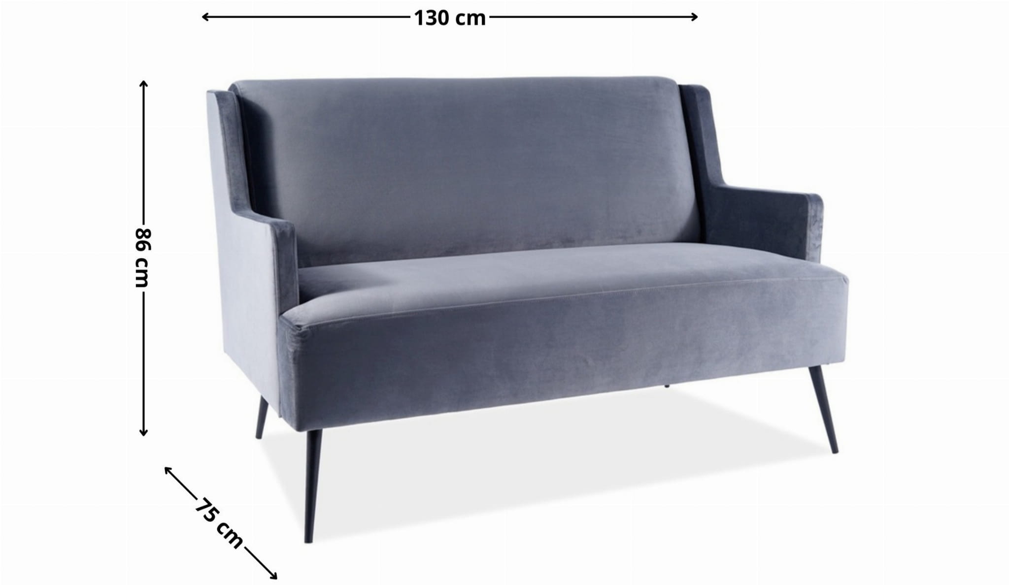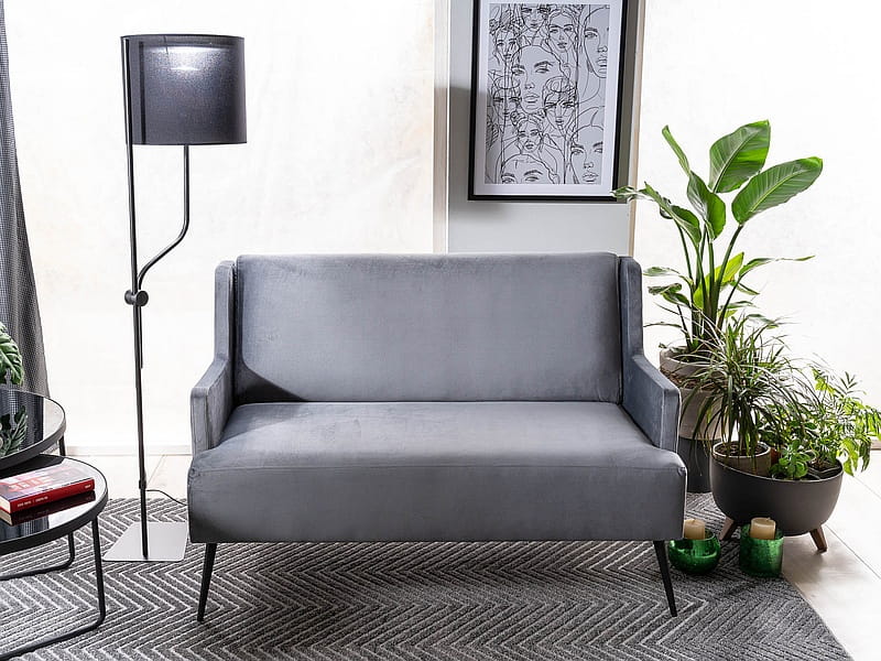 Stylowa sofa tapicerowana GEMMA velvet szary to połączenie miękkiej, aksamitnej tkaniny z wygodnym, dobrze wyprofilowanym siedziskiem. Kompaktowe wymiary sprawiają, że świetnie sprawdzi się jako sofa 2-osobowa do małego salonu, elegancka kanapa do biura lub wygodne siedzisko do kącika relaksu. Szara sofa welurowa pięknie komponuje się z drewnem, metalem i jasnymi dodatkami, tworząc przytulne, a jednocześnie nowoczesne wnętrze.