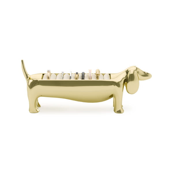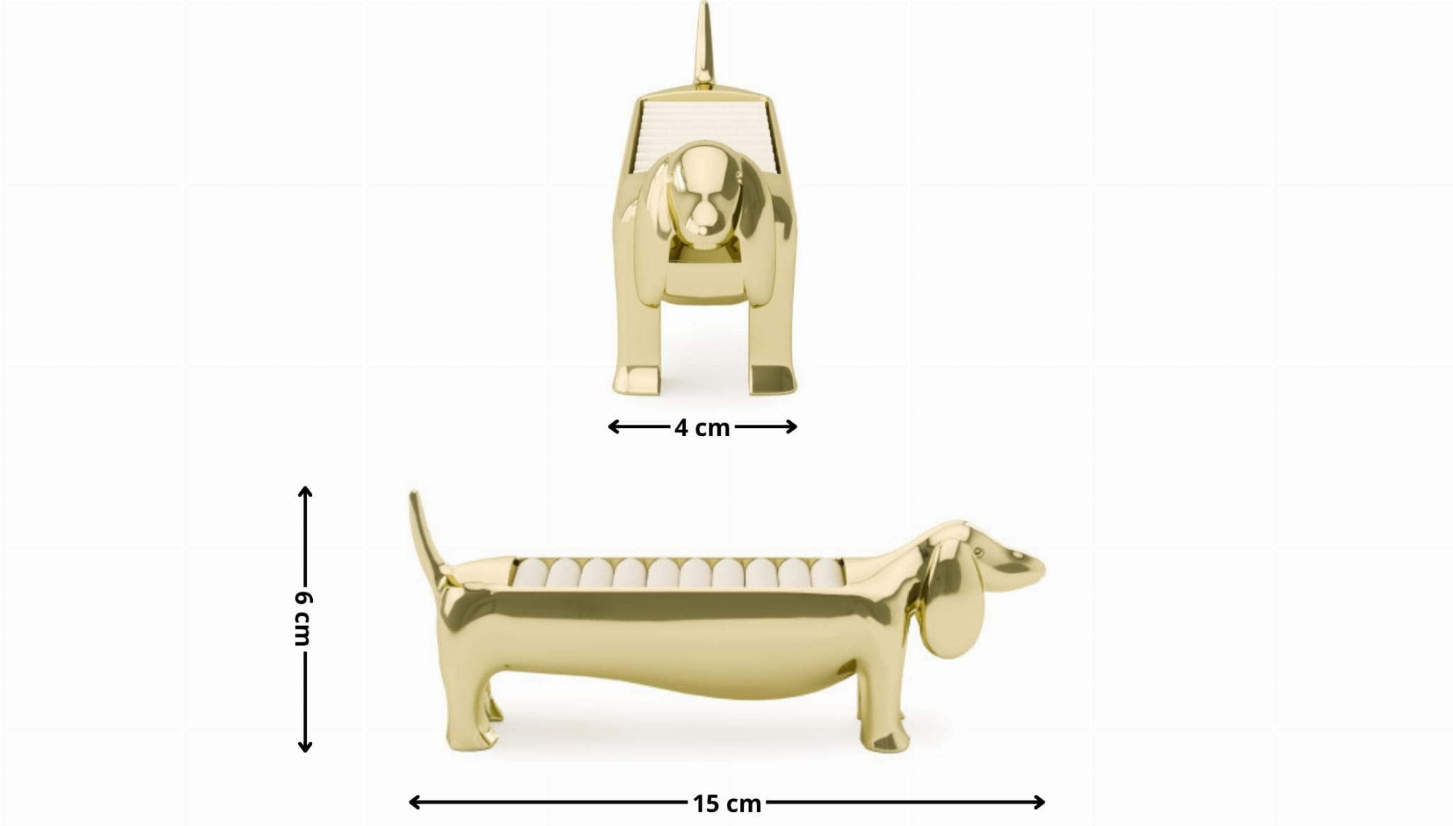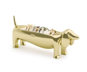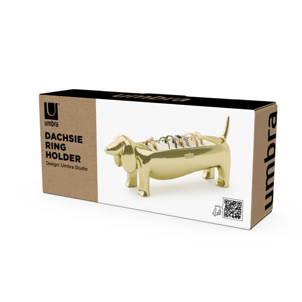 UMBRA JAMNIK to stojak na pierścionki, który zachwyca elegancką formą oraz solidnym wykonaniem. Metalowa konstrukcja pokryta złotym, chromowanym wykończeniem nadaje mu luksusowego wyglądu, jednocześnie zapewniając trwałość i stabilność. Dzięki figurce jamnika stojak świetnie komponuje się z wnętrzami glamour, nowoczesnymi i klasycznymi, stając się wyjątkowym dodatkiem do każdej toaletki czy komody.
