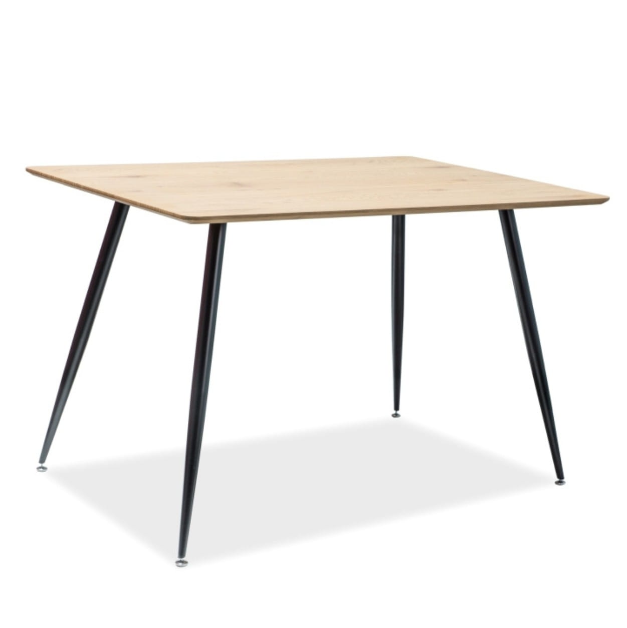 Stół REMUS dąb artisan 120 cm to wyjątkowe połączenie naturalnego piękna okleiny drewnianej z wytrzymałym metalowym stelażem w kolorze czarnym matowym. Dzięki solidnej konstrukcji oraz ponadczasowej estetyce wprowadzi do Twojego wnętrza przytulność i harmonię. Ten nowoczesny stół idealnie sprawdzi się podczas rodzinnych obiadów, spotkań z przyjaciółmi oraz codziennego użytkowania, gwarantując trwałość i wygodę na lata.