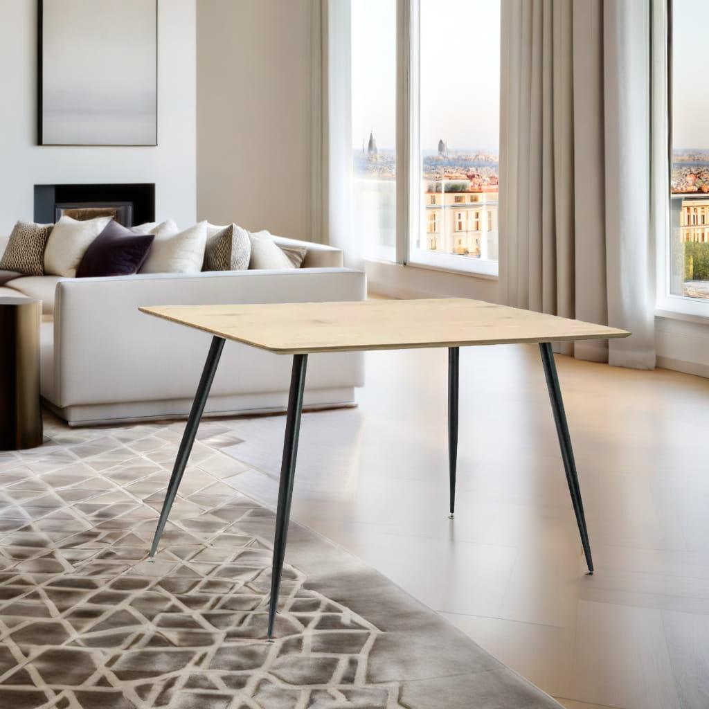 Stół drewniany REMUS 120 cm to doskonałe rozwiązanie dla osób, które poszukują trwałego, stylowego i funkcjonalnego mebla do codziennego użytku. Blat wykonany z MDF w okleinie imitującej naturalny dąb artisan zachwyca swoją strukturą i barwą, a metalowy stelaż w kolorze czarnym matowym gwarantuje stabilność oraz wyjątkowy, loftowy charakter. Dzięki uniwersalnym wymiarom stół znakomicie pasuje zarówno do niewielkiej kuchni, jak i przestronnej jadalni, pozwalając cieszyć się komfortem każdego dnia.