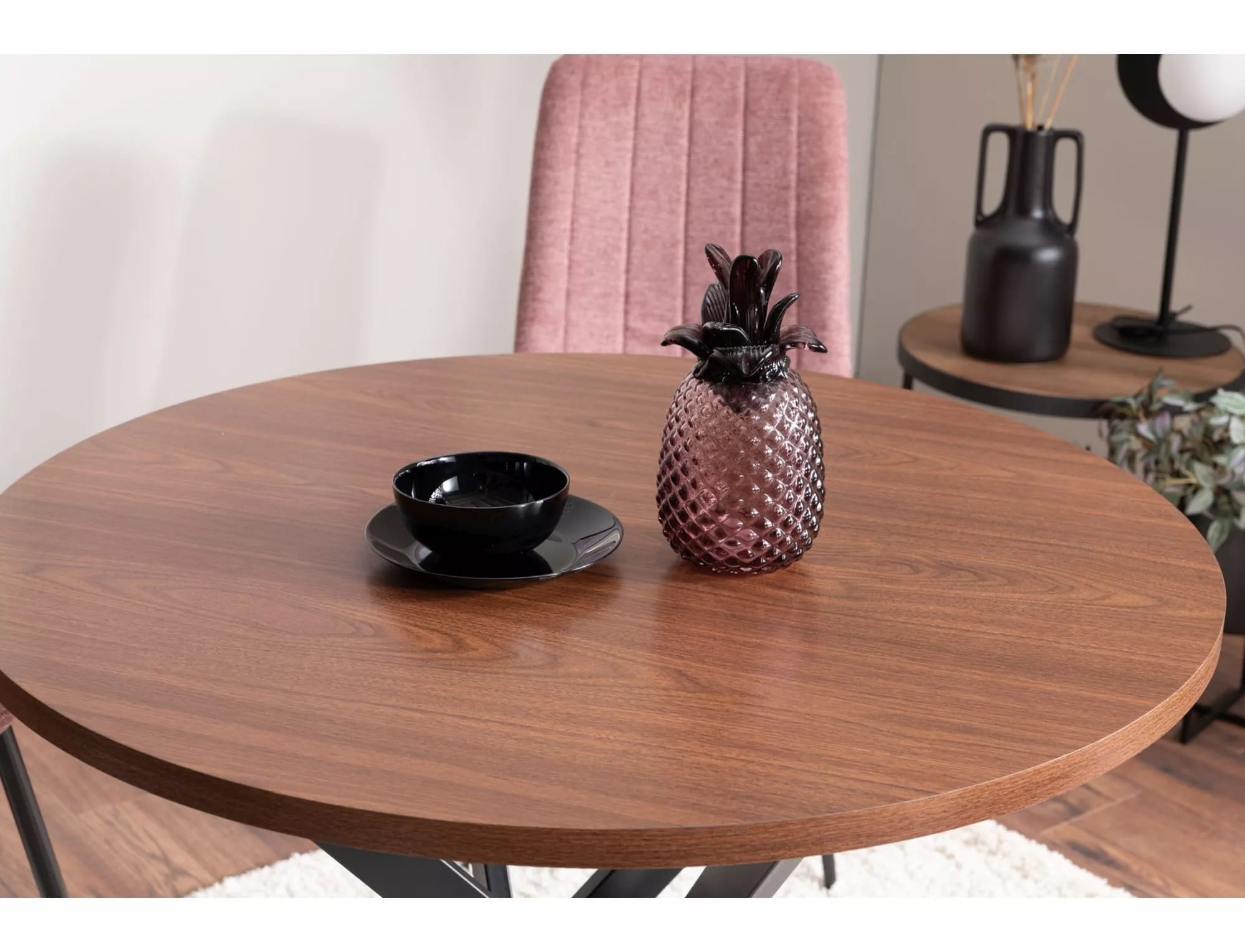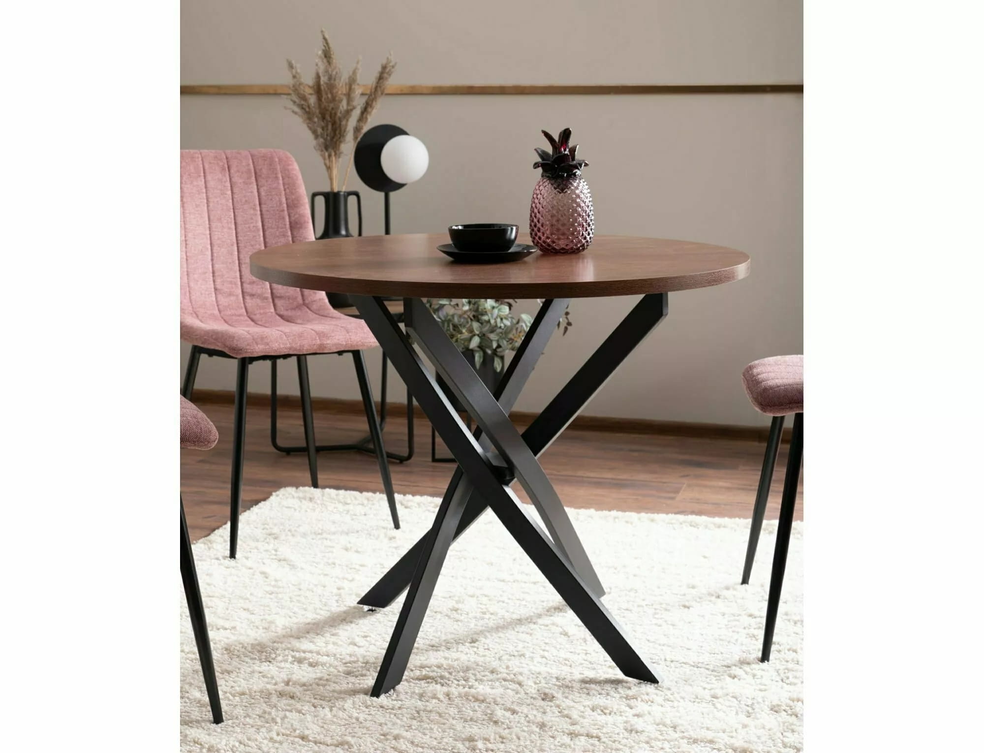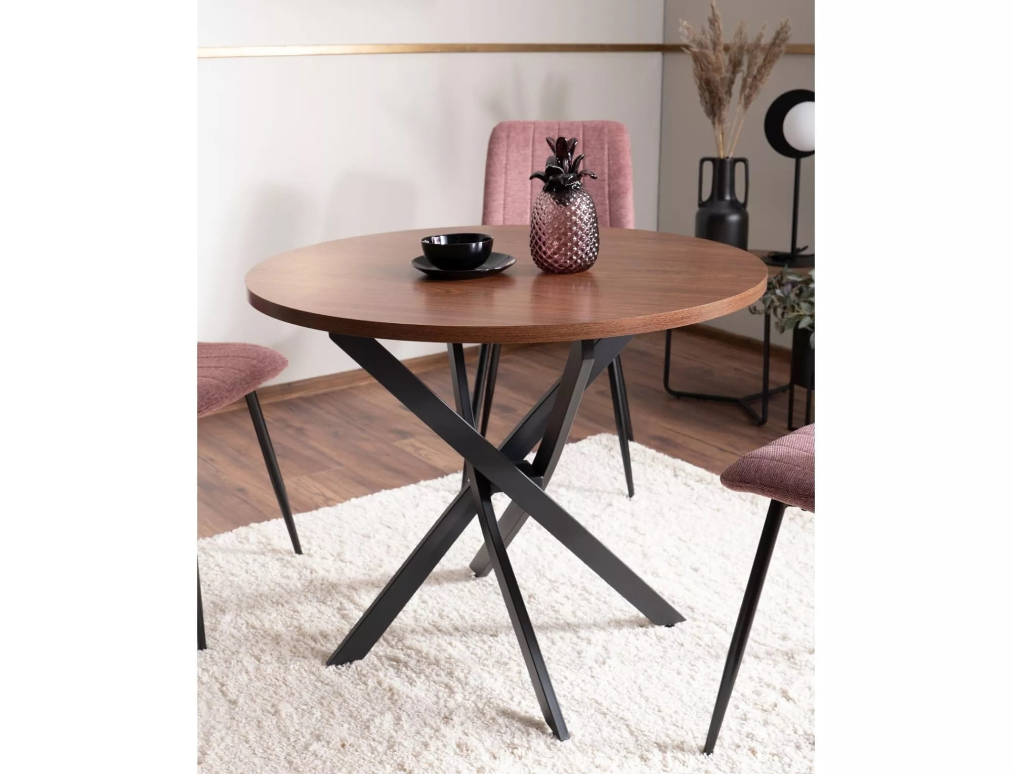 Stół okrągły AGIS orzech z czarnym stelażem 90 cm
