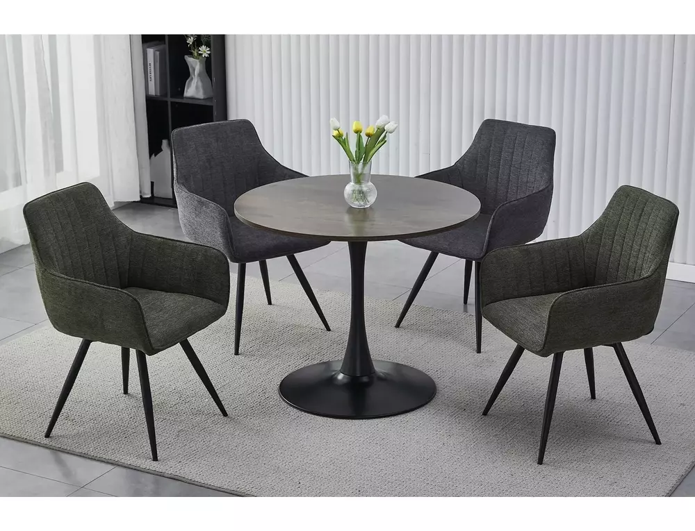 Okrągły stół AMADEO II 90 cm w kolorze orzecha z czarnym stelażem to wyjątkowe połączenie nowoczesnego designu i funkcjonalności. Kompaktowy blat pozwala na komfortowe użytkowanie nawet w mniejszych przestrzeniach, a solidna konstrukcja zapewnia stabilność i trwałość na lata. Dzięki temu stół idealnie nadaje się do codziennych posiłków oraz spotkań z bliskimi, podkreślając charakter Twojego wnętrza. To mebel, który łączy w sobie praktyczność z elegancją, tworząc przyjazną atmosferę każdego dnia.
