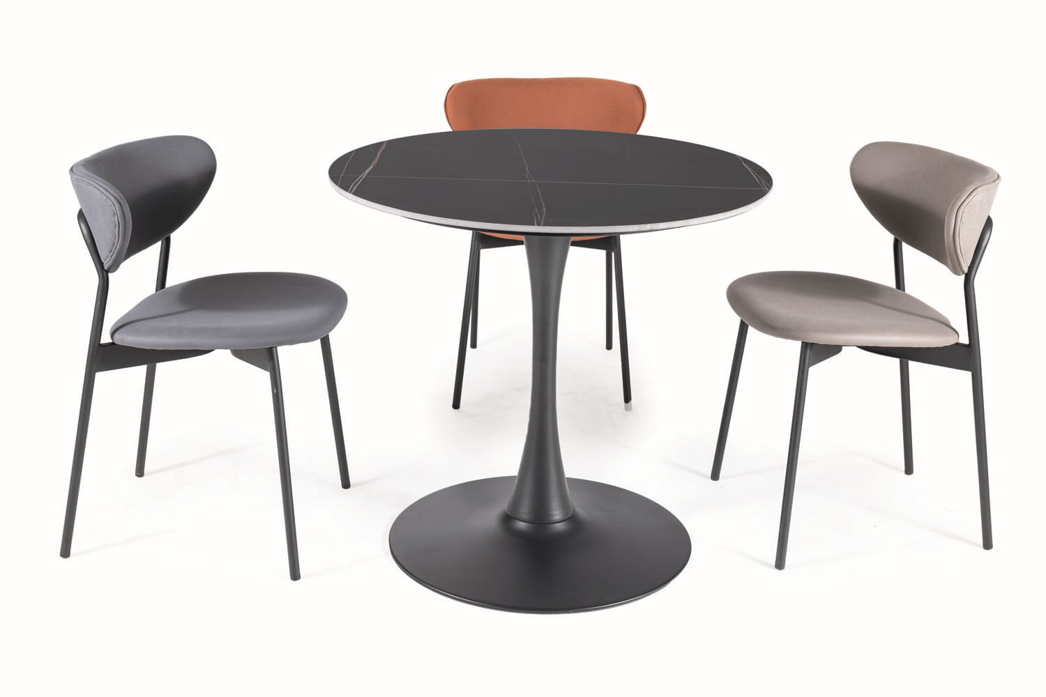 Okrągły stół ESPERO to połączenie nowoczesnego designu i wysokiej jakości materiałów. Wykonany z ceramicznego blatu w czarnym macie oraz stabilnego stalowego stelaża malowanego proszkowo, świetnie wpisuje się w aktualne trendy aranżacyjne. Dzięki kompaktowej średnicy 80 cm idealnie sprawdzi się zarówno w mniejszych mieszkaniach, jak i w eleganckich strefach jadalnianych.