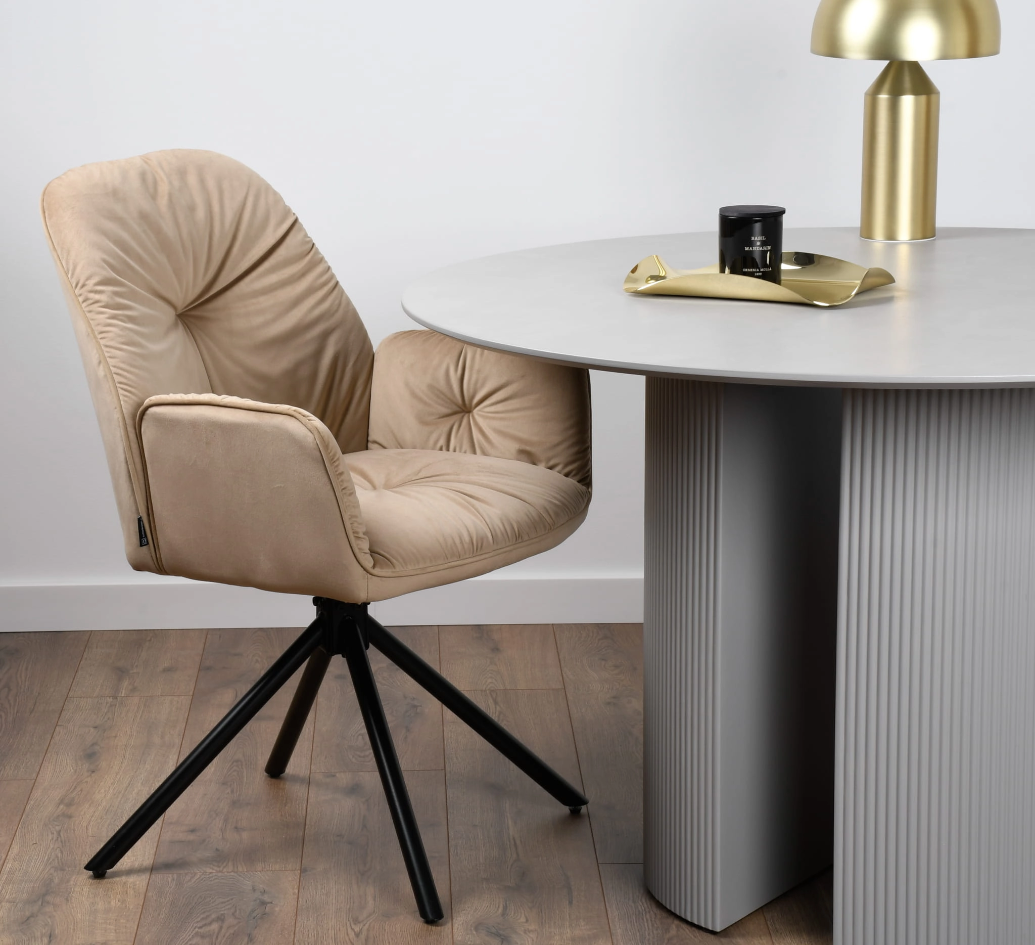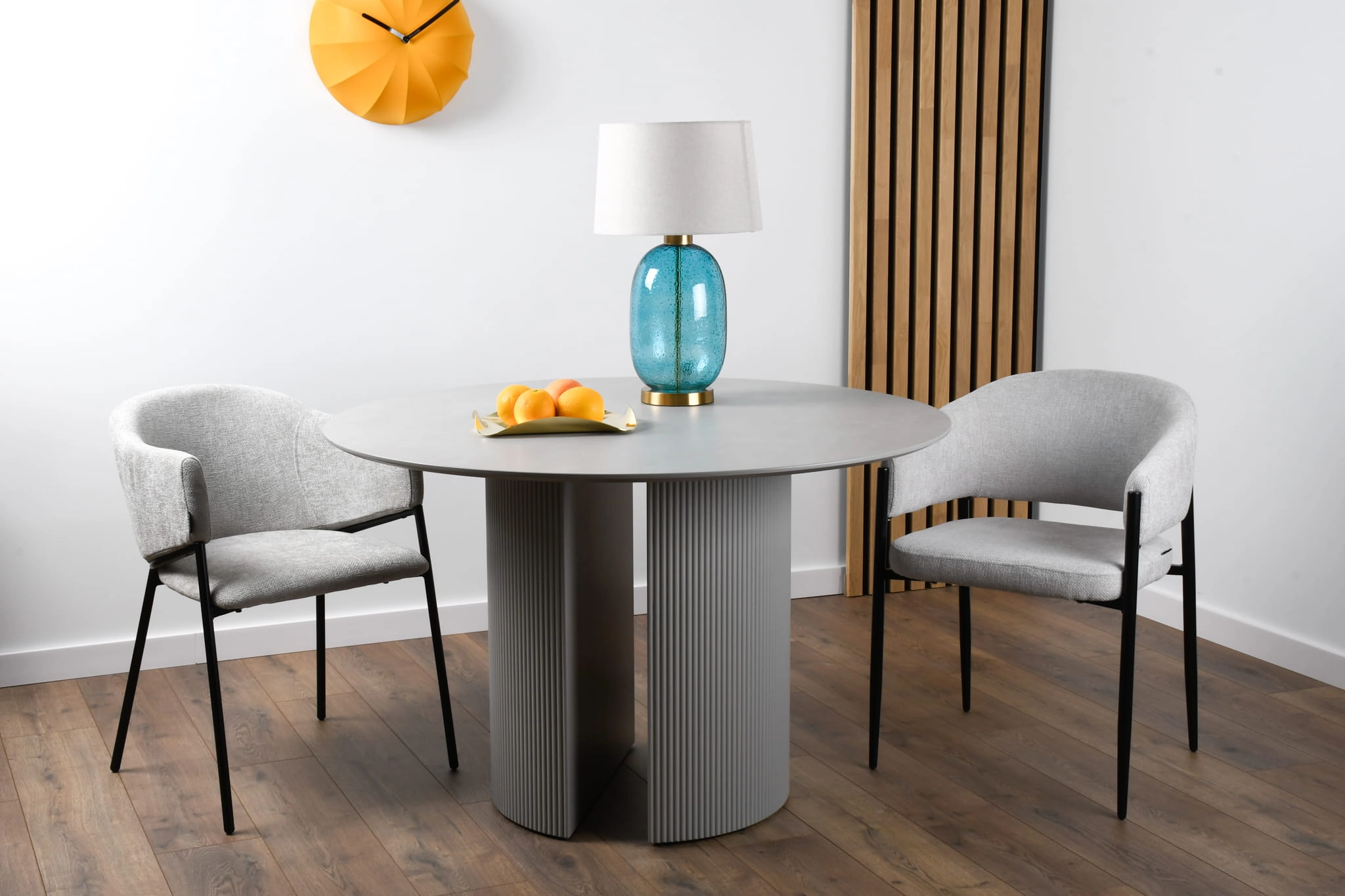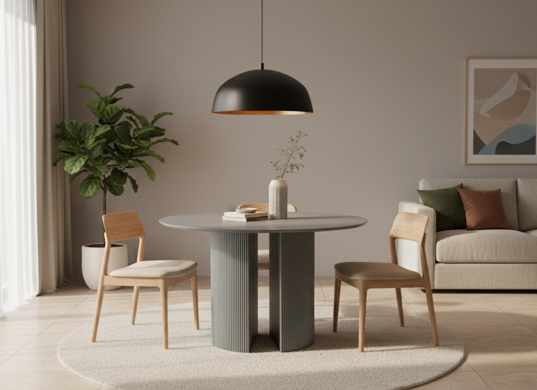 Blat o średnicy 120 cm pomieści swobodnie cztery osoby, tworząc idealną przestrzeń do wspólnych posiłków, rozmów i codziennych rytuałów. Minimalistyczna forma oraz uniwersalna kolorystyka sprawiają, że stół MEZO znakomicie odnajdzie się w nowoczesnych jadalniach, kuchniach, salonach czy eleganckich przestrzeniach biurowych.