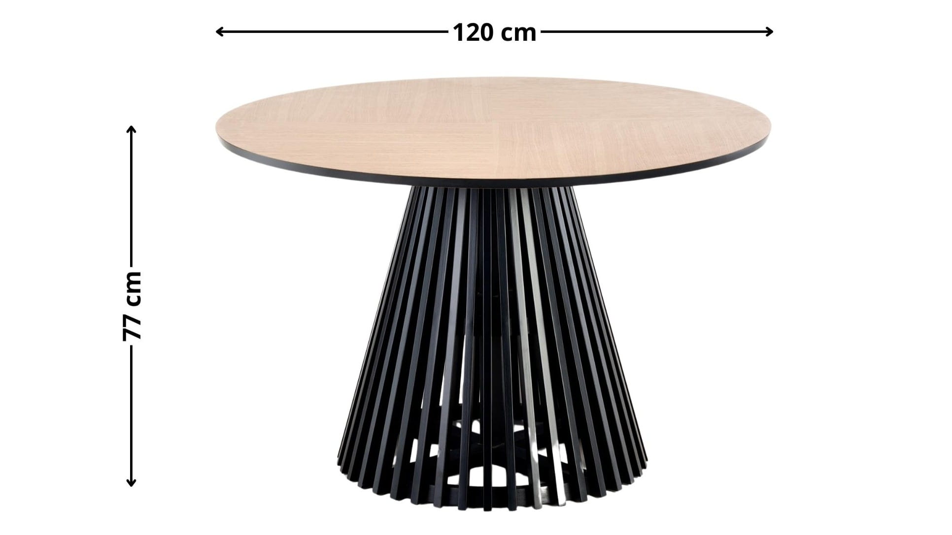 Dzięki średnicy 120 cm stół zapewnia komfortowe miejsce dla 4–6 osób, dzięki czemu świetnie sprawdzi się jako rodzinny stół do jadalni, a także elegancki stół do kuchni w otwartej strefie dziennej. Okrągły kształt buduje przyjazną atmosferę – każdy siedzi blisko siebie, nikt nie jest „w kącie”, a rozmowa przy stole staje się naturalna i swobodna.