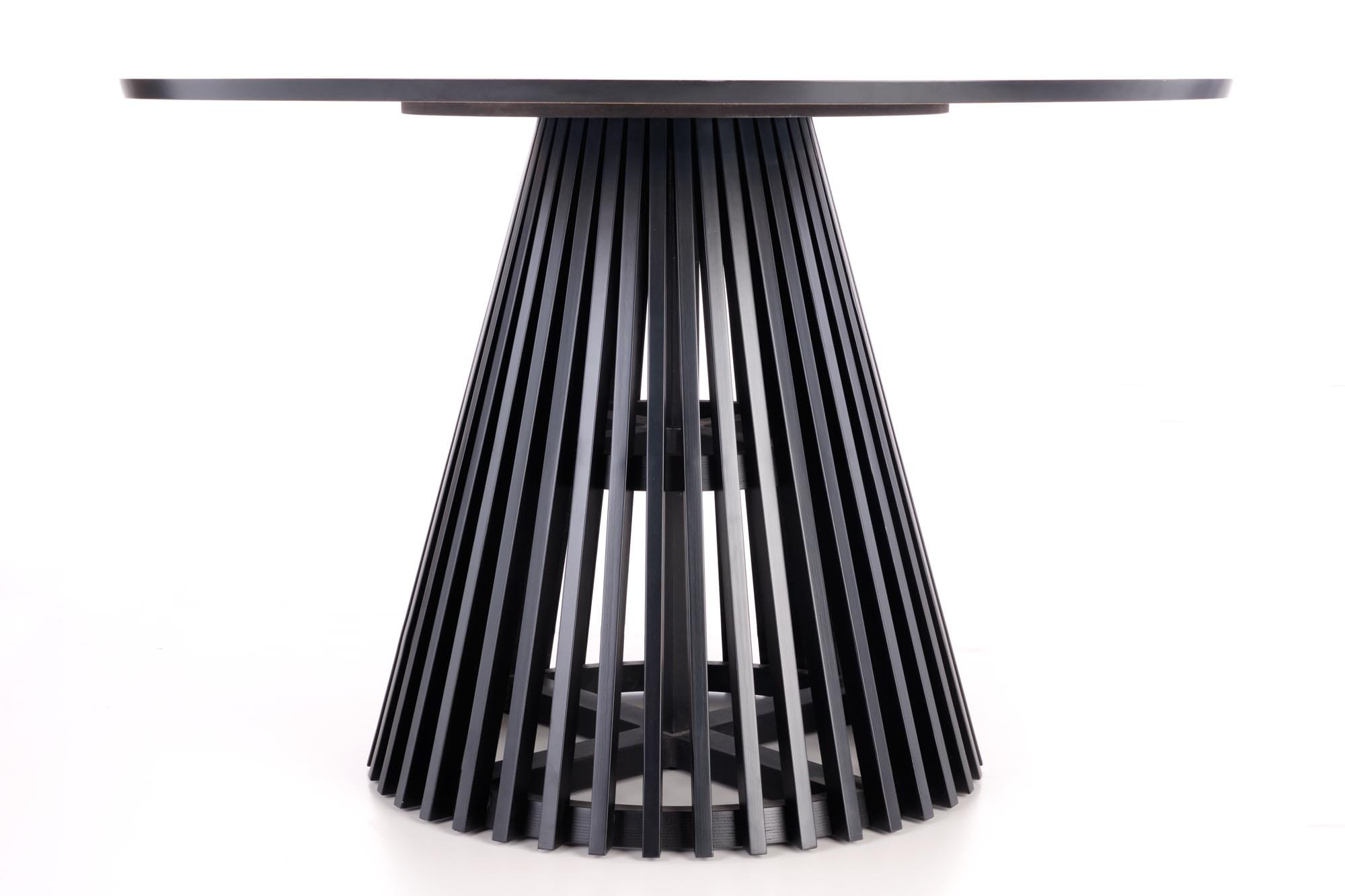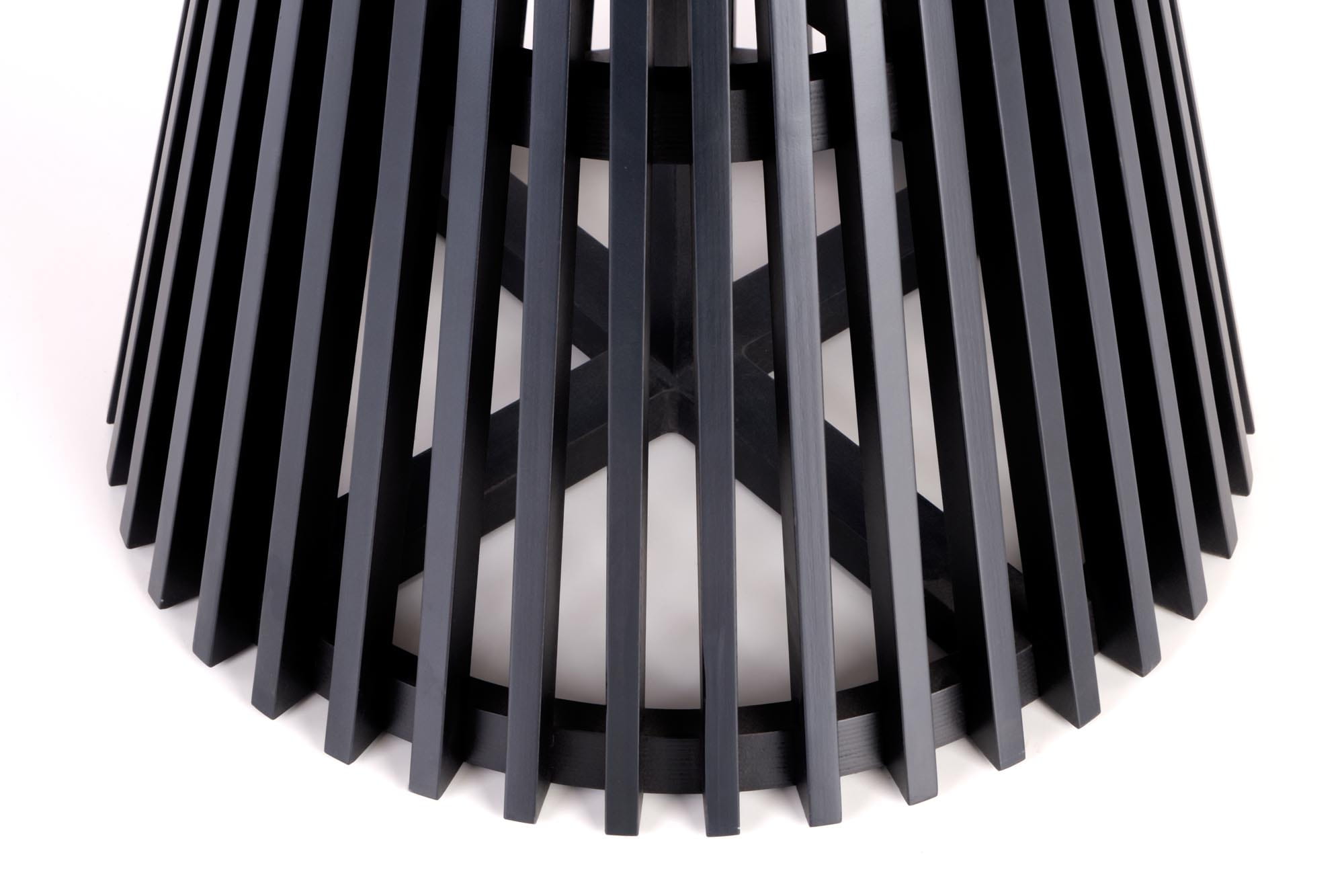 Stabilna czarna podstawa z drewna bukowego nadaje stołowi wyrazisty, nowoczesny charakter, który doskonale komponuje się zarówno z jasnymi, jak i ciemnymi wnętrzami. Połączenie naturalnego dębu z czernią tworzy efektowny, ponadczasowy kontrast.