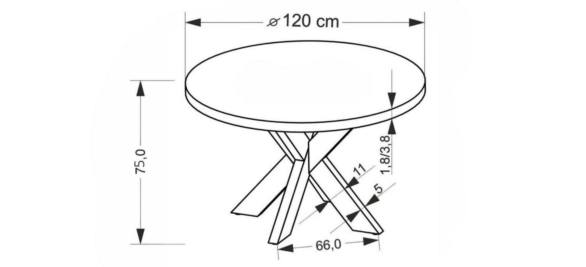 - Średnica blatu: 120 cm