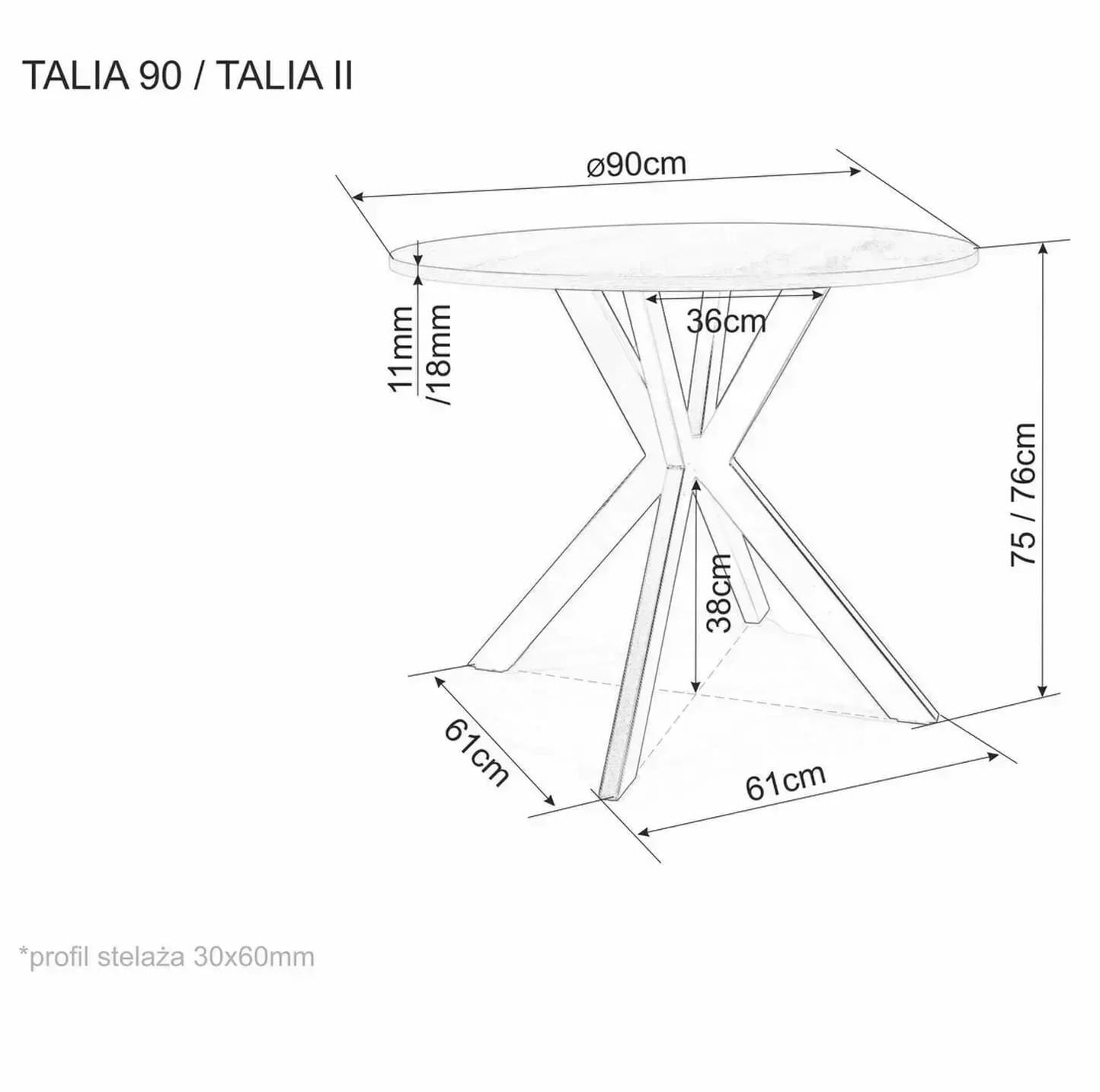 Stół okrągły TALIA II orzech, czarny mat 90 cm