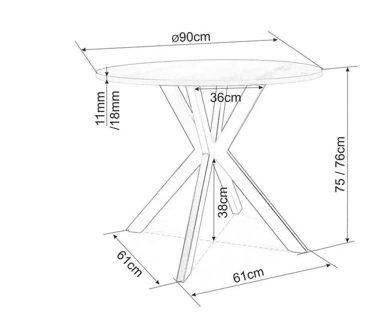 Stół okrągły TALIA biały z efektem marmuru 90 cm