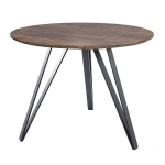 Poznaj TETIS – okrągły stół 100 cm w wybarwieniu orzech vintage, który łączy ciepło naturalnego rysunku forniru z lekką wizualnie, stabilną metalową podstawą. To funkcjonalny stół do jadalni, który świetnie pracuje w średnich i mniejszych przestrzeniach, zapewniając komfort dla 4 osób i przyjemną, towarzyską komunikację przy okrągłym blacie.