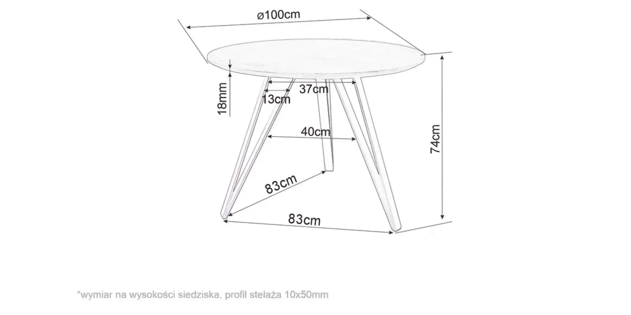 - Średnica 100 cm – wygodna przestrzeń dla 4 osób w jadalni lub aneksie