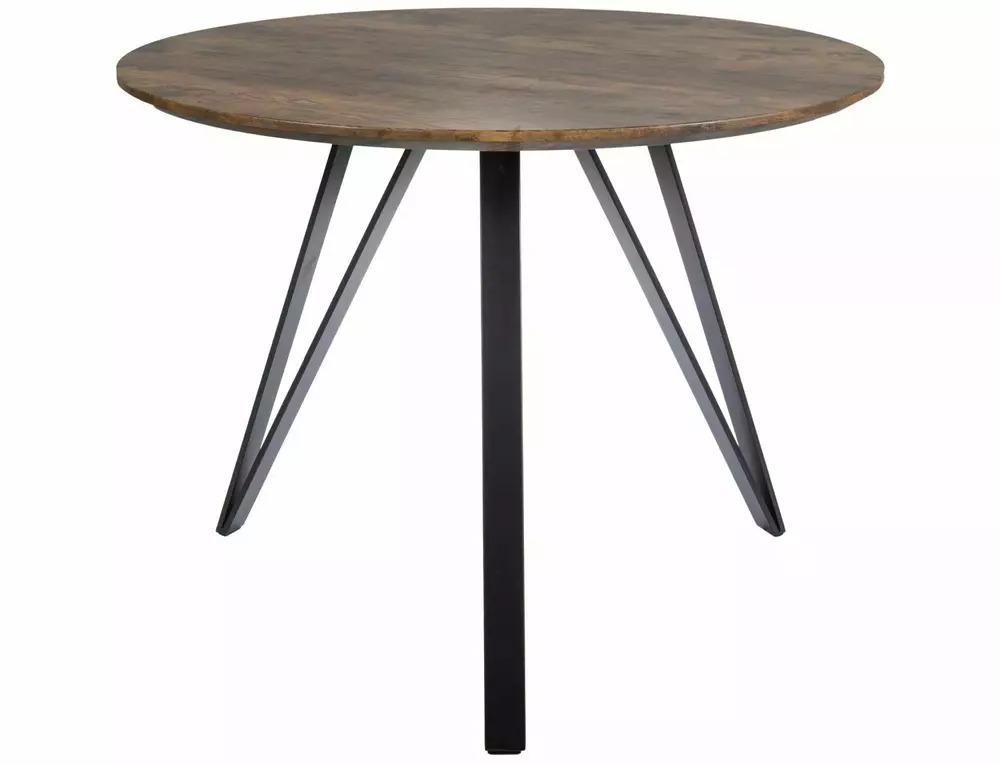 ✨ Stół okrągły TETIS 100 cm orzech vintage – stylowy stół do jadalni i salonu na metalowej podstawie