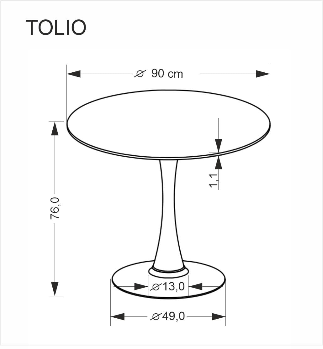 - Okrągły blat o średnicy 90 cm zapewnia komfort użytkowania nawet dla 4 osób