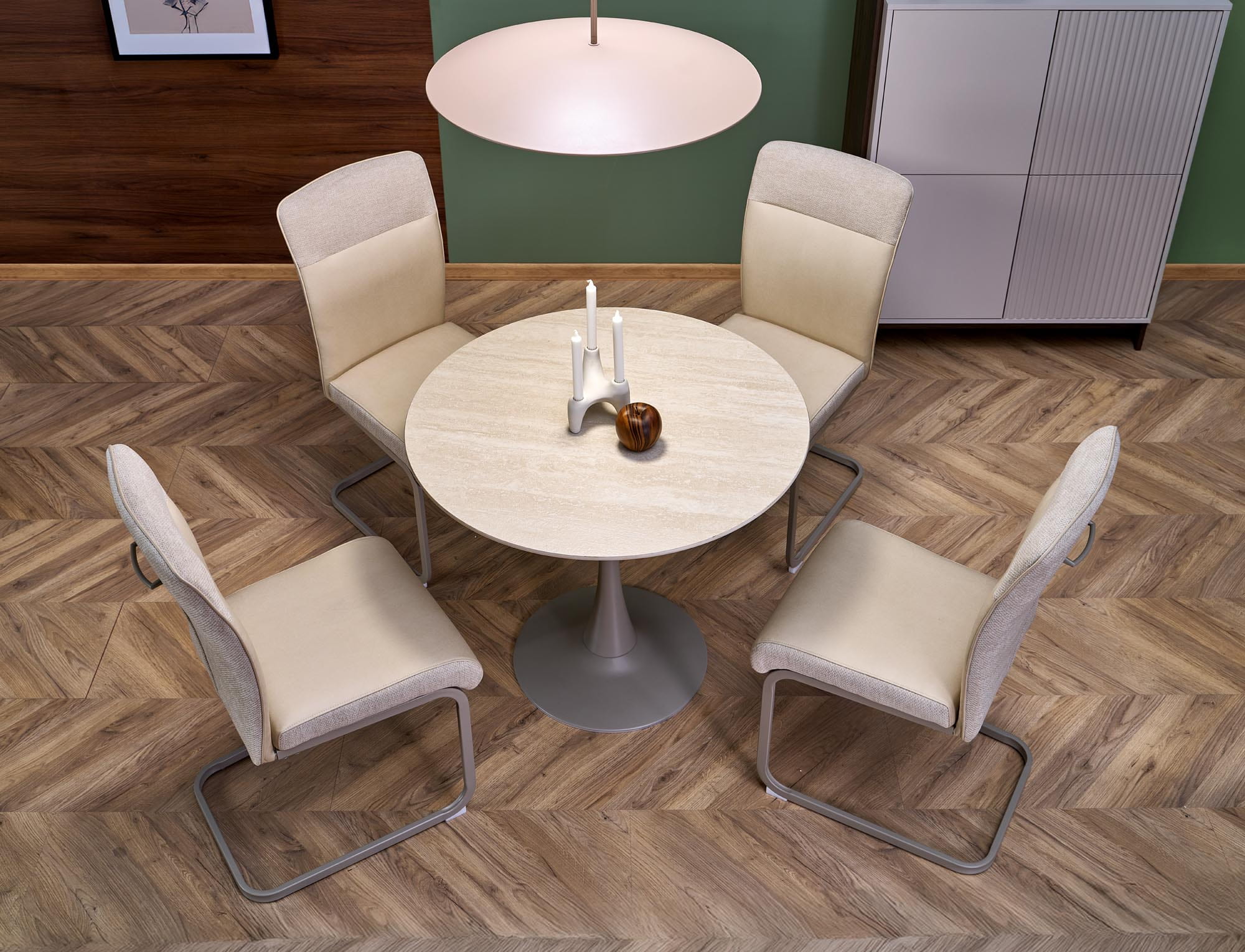 Stół okrągły TOLIO 90 cm trawertyn/ kaszmir