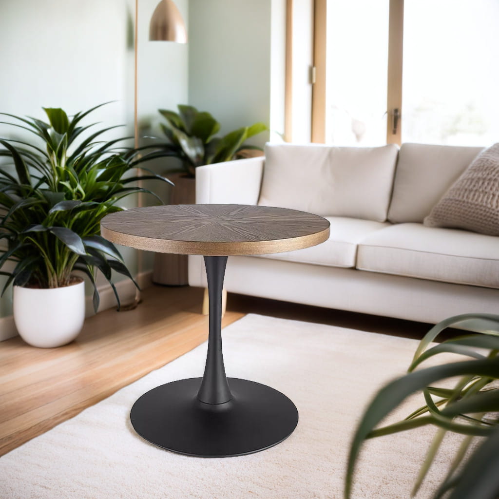 Stół okrągły AMADEO 80 cm to harmonijne połączenie naturalnego wykończenia blatu w kolorze orzecha z czarnym, metalowym stelażem. Doskonały wybór do jadalni, salonu lub kuchni, w których liczy się zarówno funkcjonalność, jak i design. Nowoczesny stół do 4 osób o kompaktowych wymiarach idealnie sprawdzi się również w mniejszych przestrzeniach, nie tracąc przy tym na stylu.