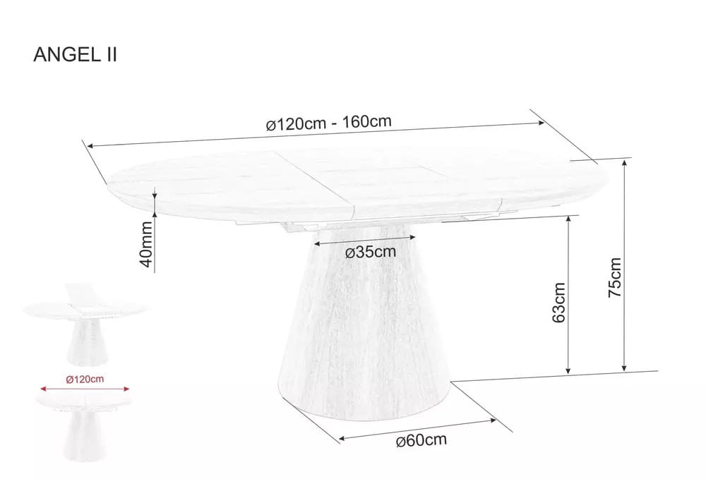 - Średnica blatu (złożony): 120 cm