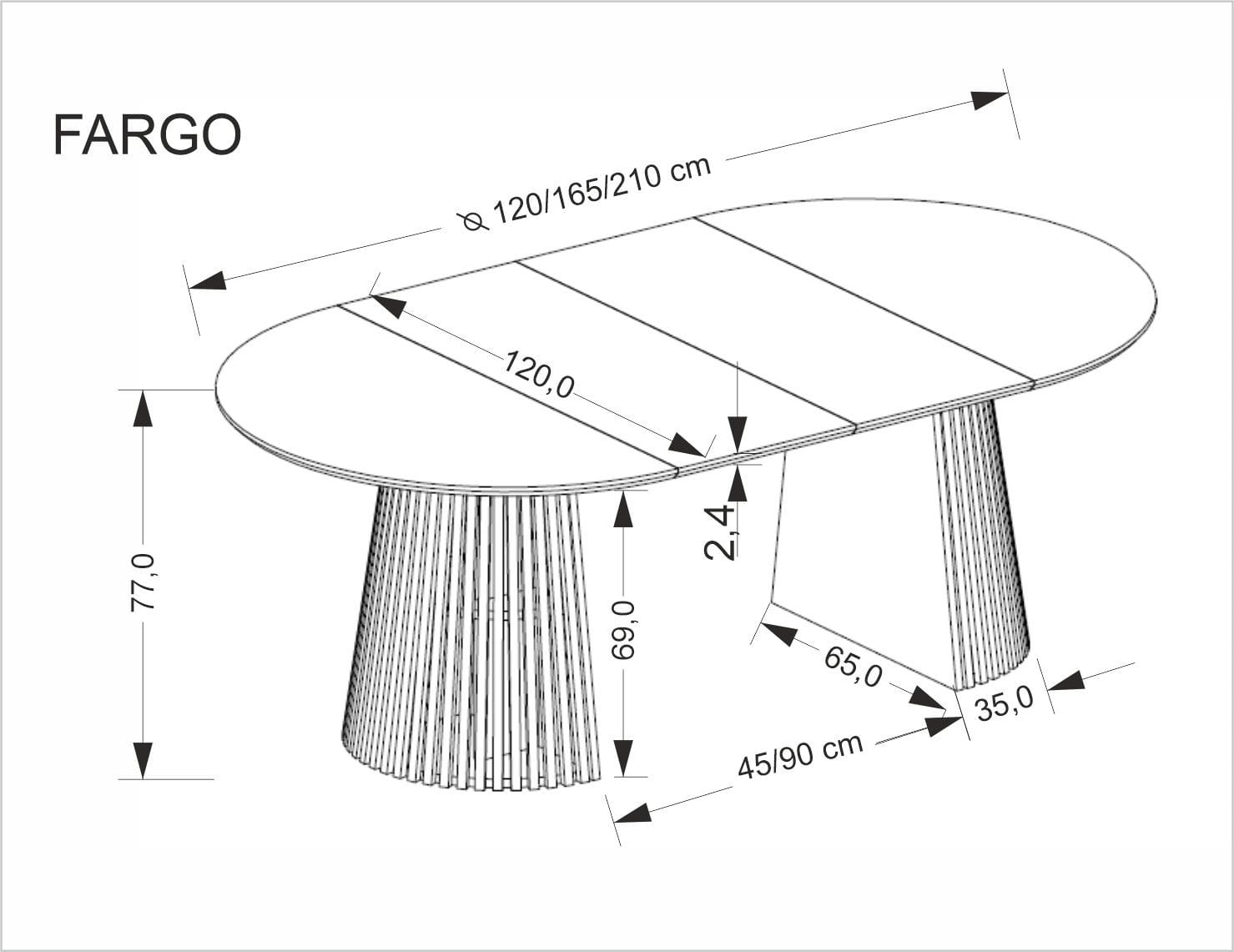 Stół rozkładany okrągły FARGO to propozycja dla osób, które chcą połączyć codzienną wygodę z możliwością przygotowania przestrzeni na większe spotkania. Na co dzień okrągły blat o szerokości 120 cm pomaga zachować lekkość aranżacji, a po rozłożeniu do 210 cm tworzy wygodne miejsce na rodzinny obiad, święta lub wieczór z przyjaciółmi.