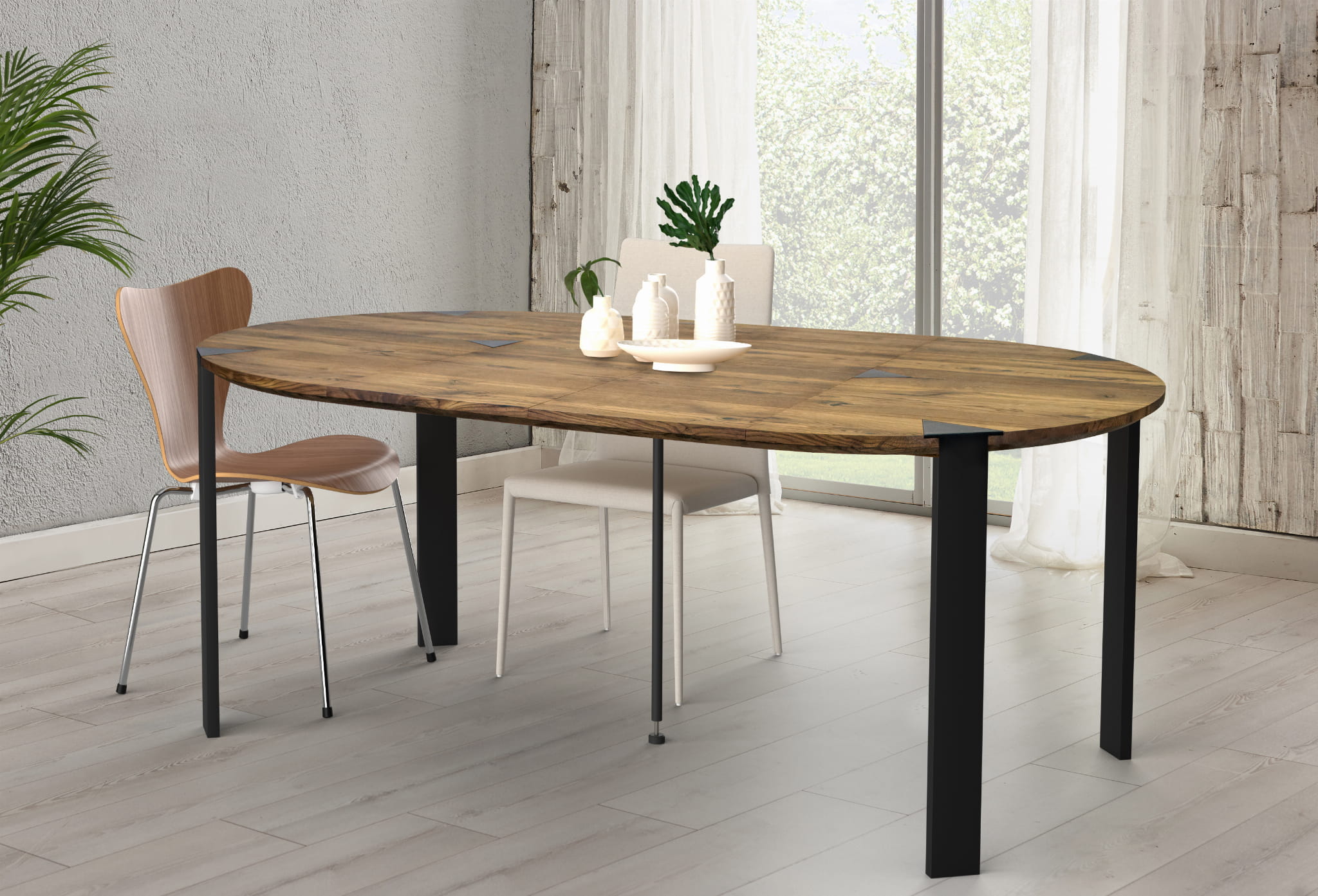 - Materiał: drewno lite dębowe olejowane, stal malowana proszkowo