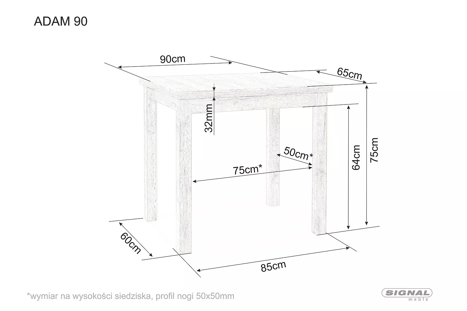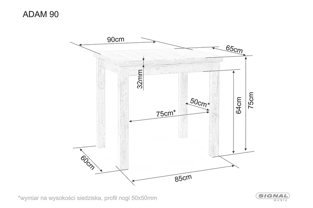 Stół prostokątny ADAM dąb artisan 90 cm