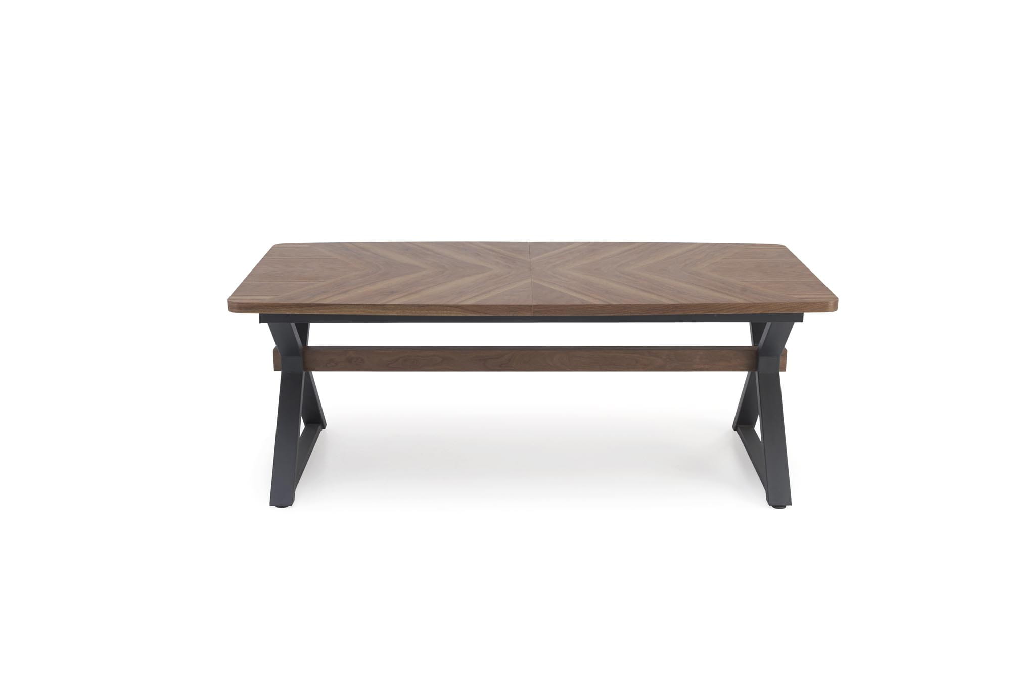 Naturalny orzechowy blat w połączeniu z czarnymi stalowymi nogami podkreśla charakter wnętrz industrialnych i loftowych, a jednocześnie nadaje ciepła bardziej klasycznym aranżacjom. To stół rodzinny do jadalni, który zachwyci nie tylko wyglądem, ale też solidnością wykonania.