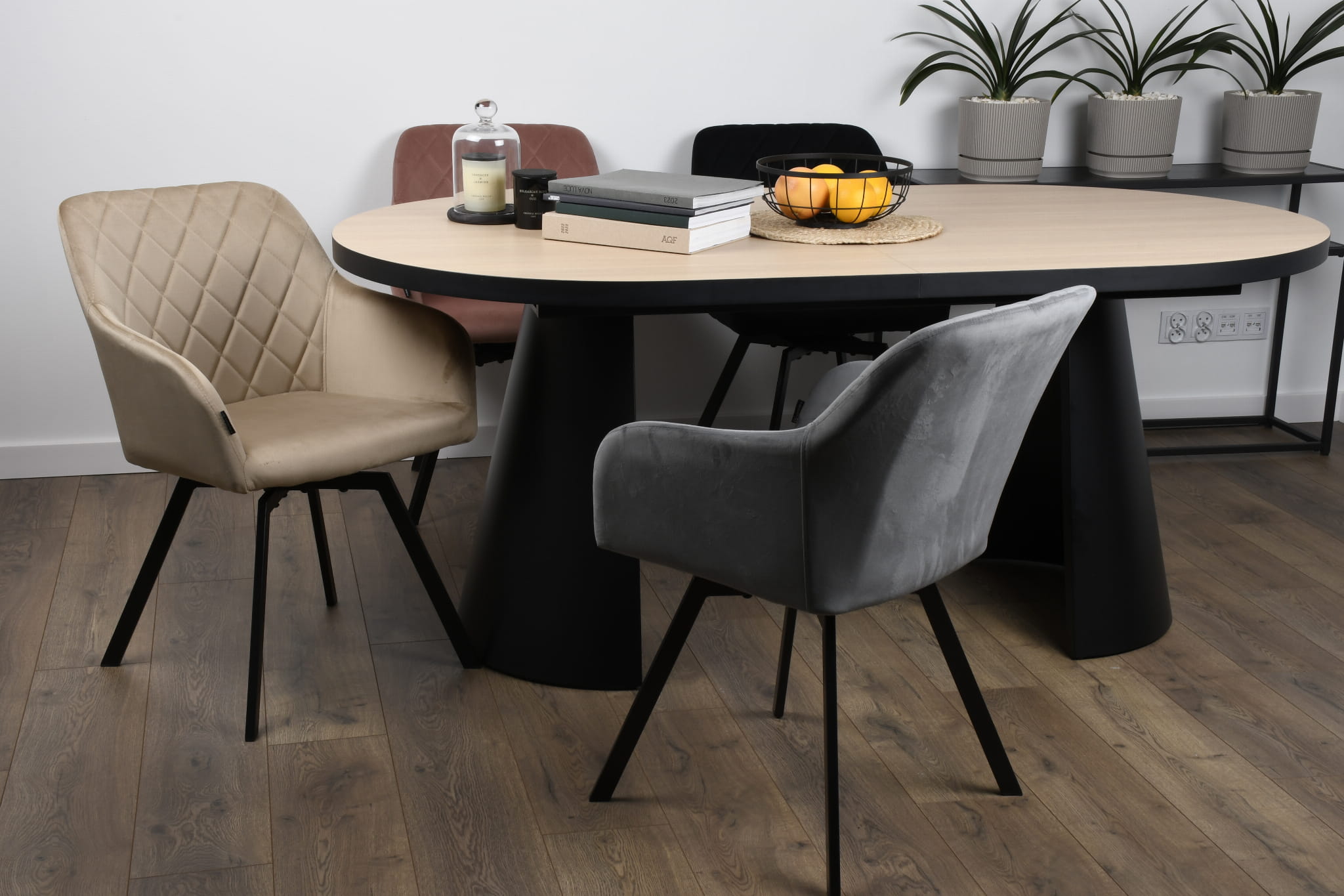 Wykończenie MDF okleinowany – melamina ułatwia utrzymanie blatu w czystości, a stal malowana proszkowo gwarantuje stabilność konstrukcji. Neutralne połączenie naturalnego brązu i czerni świetnie współgra z krzesłami tapicerowanymi, metalowymi i drewnianymi oraz z dodatkami w stylu industrialnym i nowoczesnym. Poczuj komfort każdego dnia – wybierz mebel, który łączy funkcjonalność i ponadczasowy design.