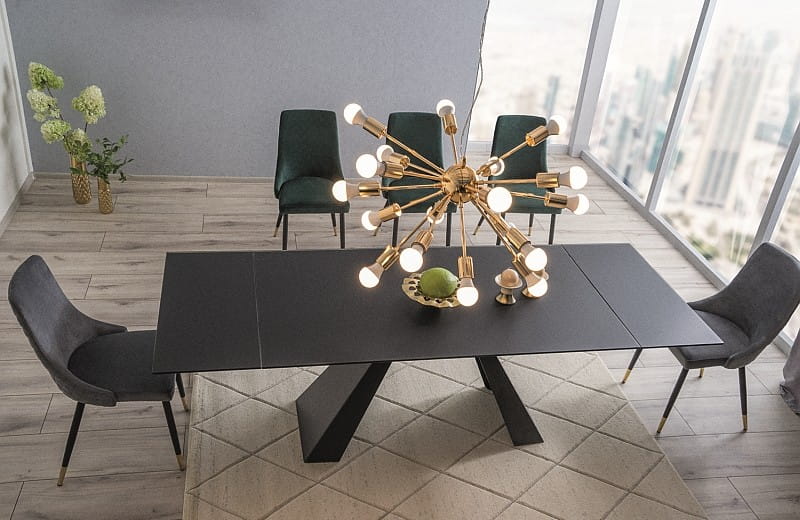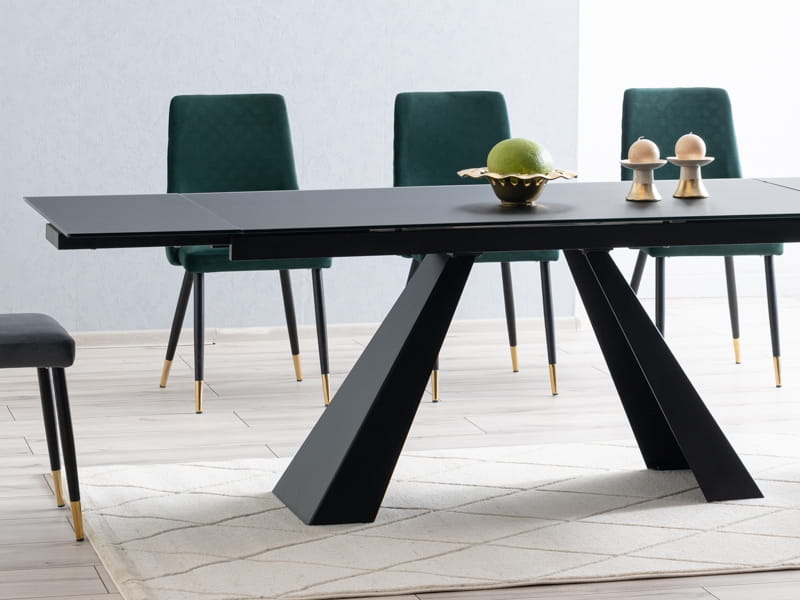 Stół SALVADORE to nowoczesny mebel, który łączy w sobie wysoką estetykę i praktyczne rozwiązania. Blat w wykończeniu czarny mat dodaje wnętrzu klasy i lekkości, a stabilny metalowy stelaż nadaje całości loftowego charakteru. Dzięki funkcji rozkładania, stół z łatwością dopasujesz do codziennych posiłków lub uroczystych spotkań w większym gronie.