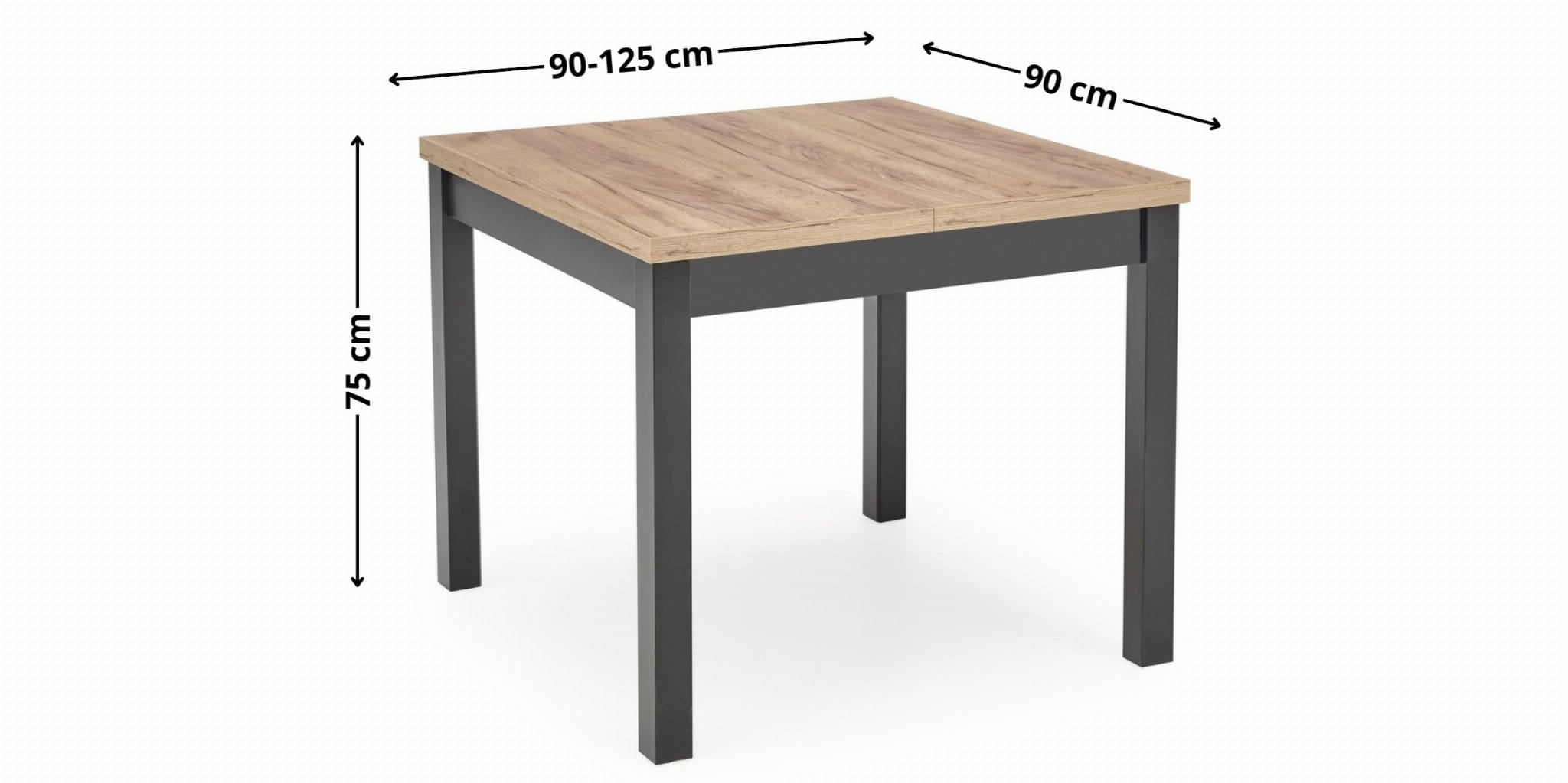 Stół rozkładany TIAGO KWADRAT 90-125cm dąb craft, nogi czarne