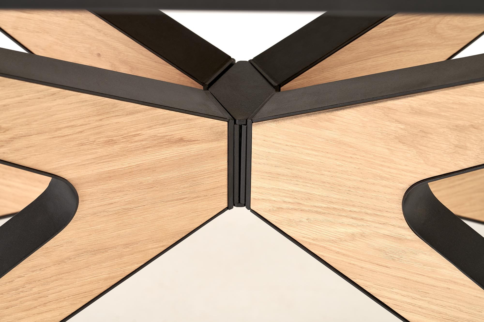 Dzięki możliwości wydłużenia blatu z 160 cm do 220 cm, stół z łatwością pomieści większą liczbę gości – idealny na rodzinne spotkania czy święta. Mechanizm rozkładania jest prosty i szybki w obsłudze, a całość wykonana została z myślą o trwałości i codziennym użytkowaniu. Naturalny kolor blatu w połączeniu z czarną podstawą tworzy ponadczasową kompozycję pasującą do różnych aranżacji.
