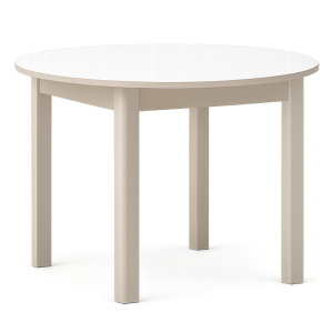 - Okrągły kształt blatu – ułatwia swobodną rozmowę przy stole i dobrze sprawdza się w mniejszych wnętrzach, gdzie narożniki mogłyby przeszkadzać w przejściu.