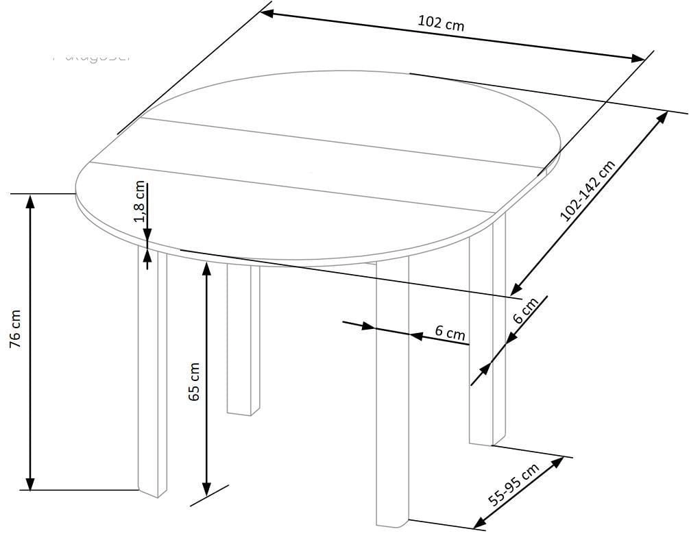 - Rozkładany blat 102-142 cm – na co dzień oszczędzasz miejsce, a podczas wizyty gości zyskujesz dodatkową powierzchnię do wygodnego podania posiłku.