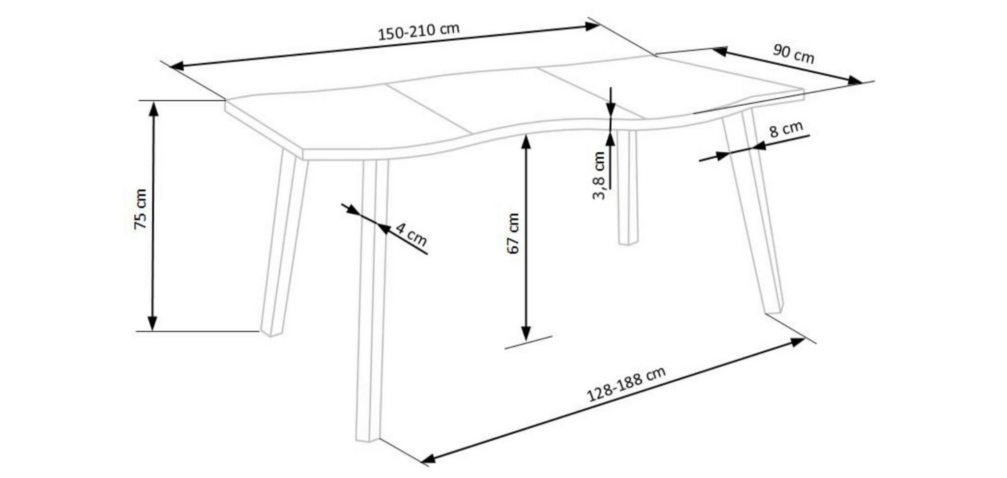 - Rozkładany blat 150–210 cm – więcej miejsca, gdy tego potrzebujesz