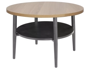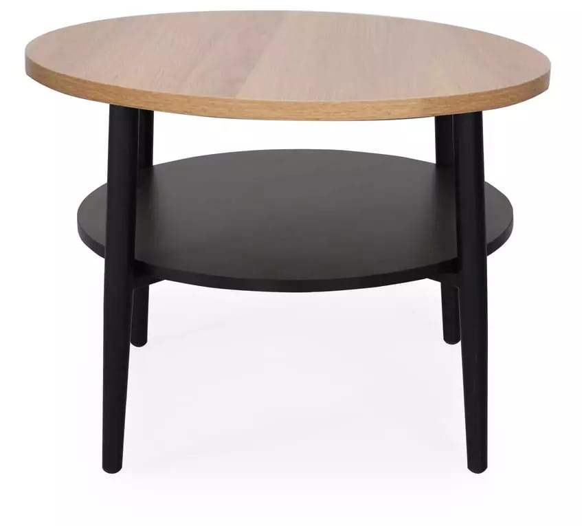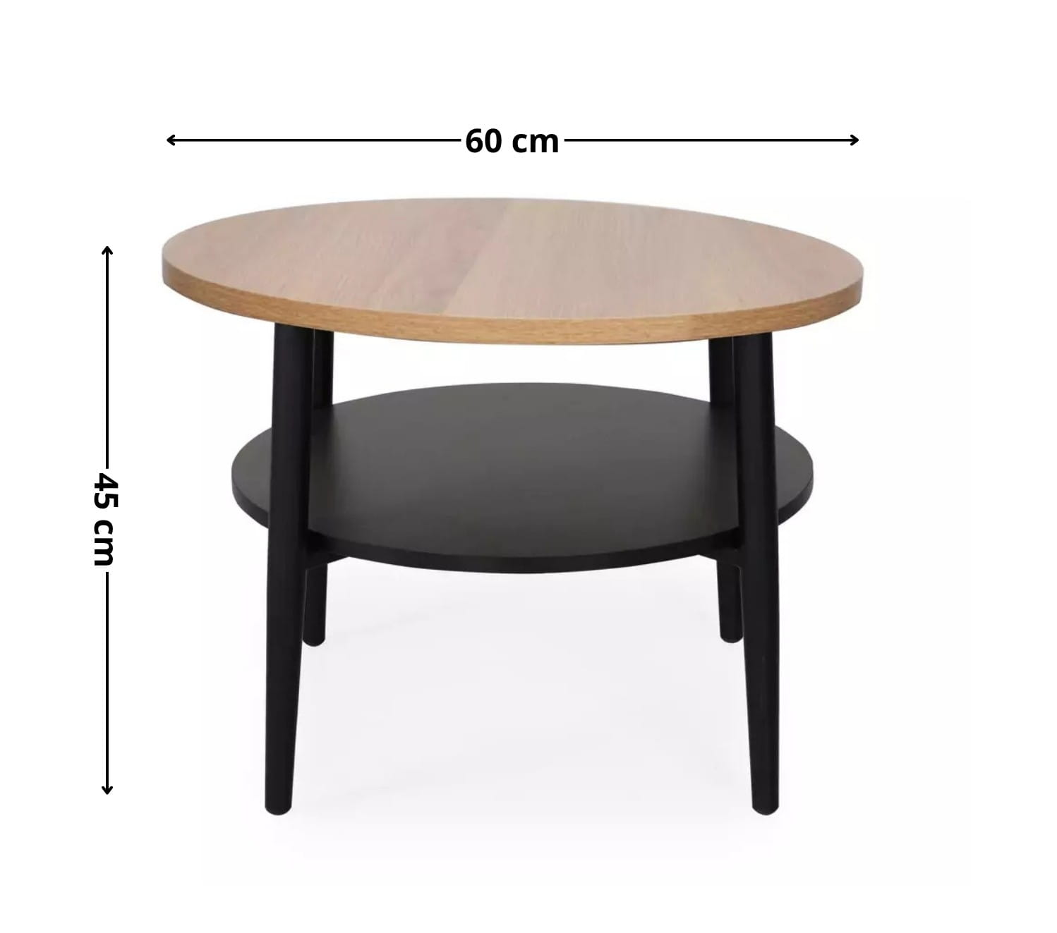 ✨ Stolik kawowy okrągły ELLA B dąb/czarny z dodatkową półką – styl i wygoda w jednym