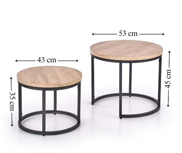 Stylowy zestaw ław OREO to połączenie funkcjonalności, minimalistycznej formy oraz elegancji drewna. Dwa różnej wielkości stoliki, wykonane z płyty MDF w kolorze dąb san remo i osadzone na czarnym, stalowym stelażu, doskonale wpisują się w aktualne trendy wnętrzarskie. Sprawdzą się zarówno jako zestaw kawowy do salonu, jak i nowoczesna dekoracja do innych pomieszczeń. Kompaktowa forma i możliwość ustawiania stolików razem lub osobno zapewniają wygodę i pełną swobodę aranżacyjną.