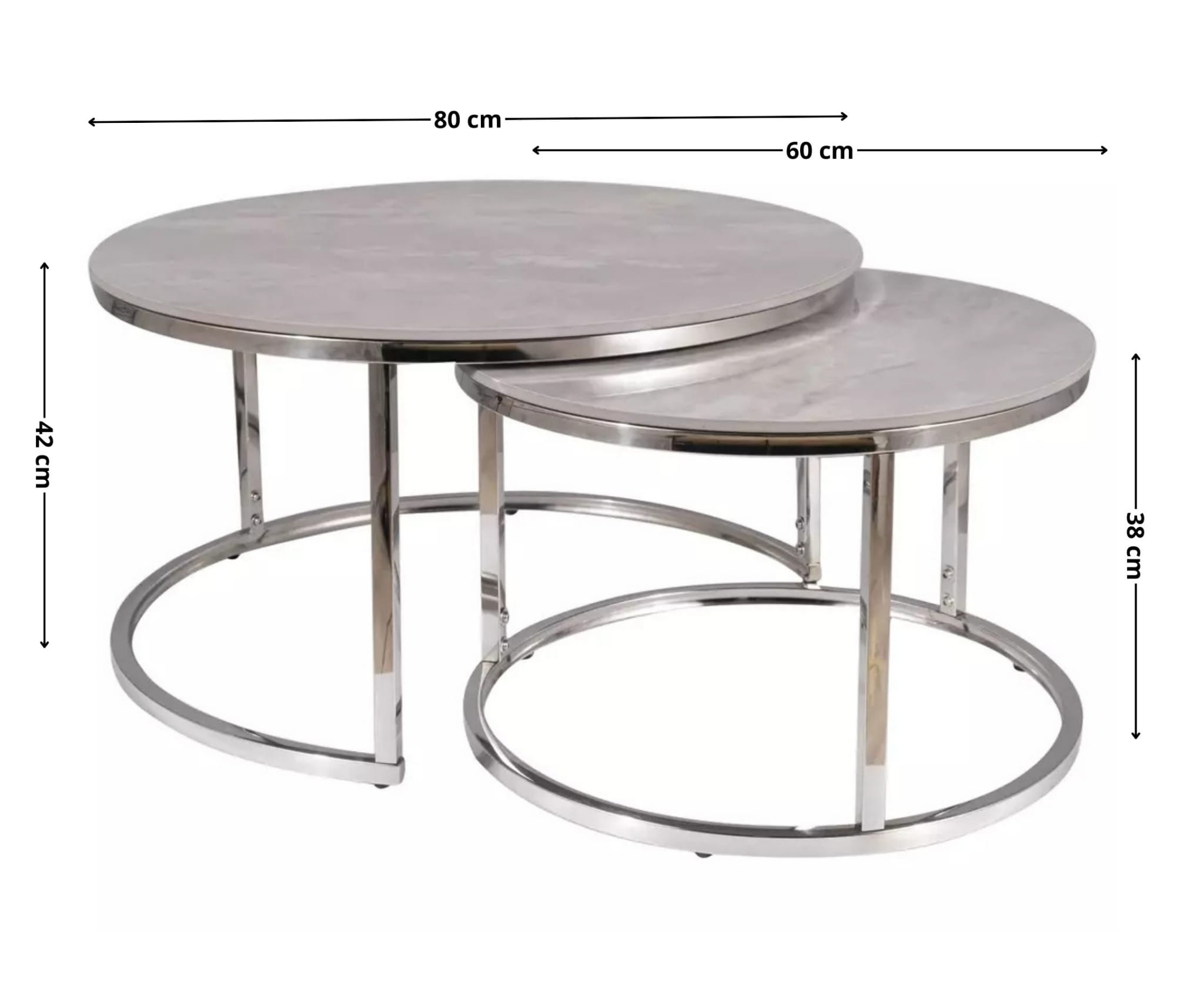 - Średnica mniejszego stolika: 60 cm