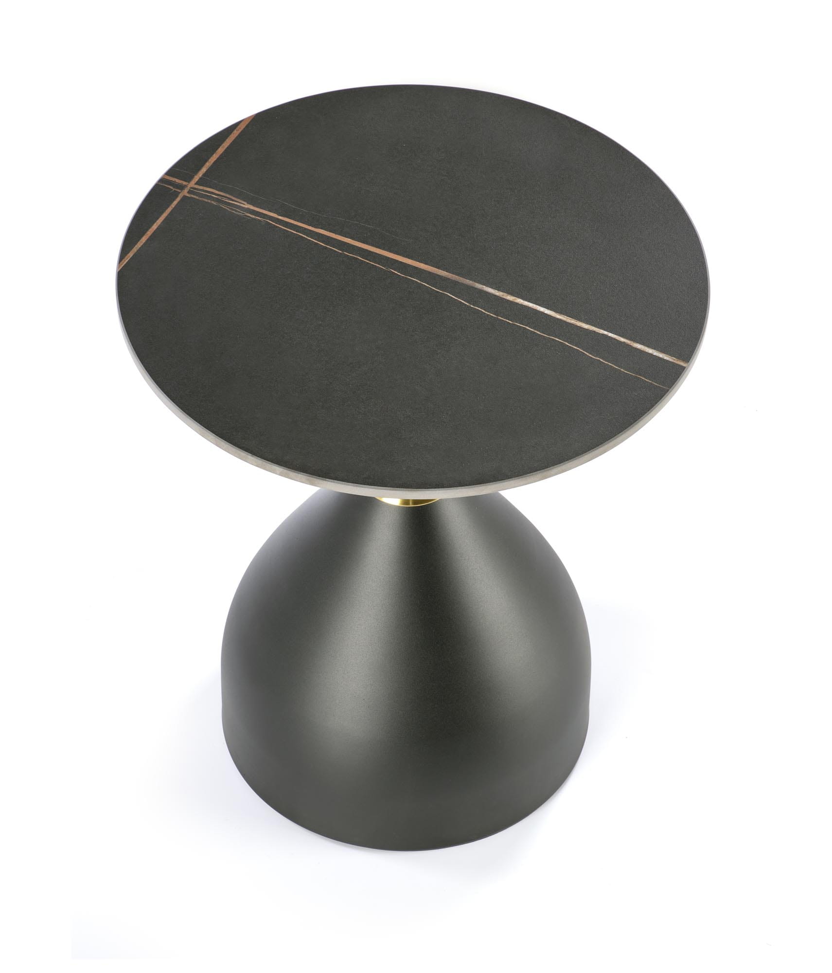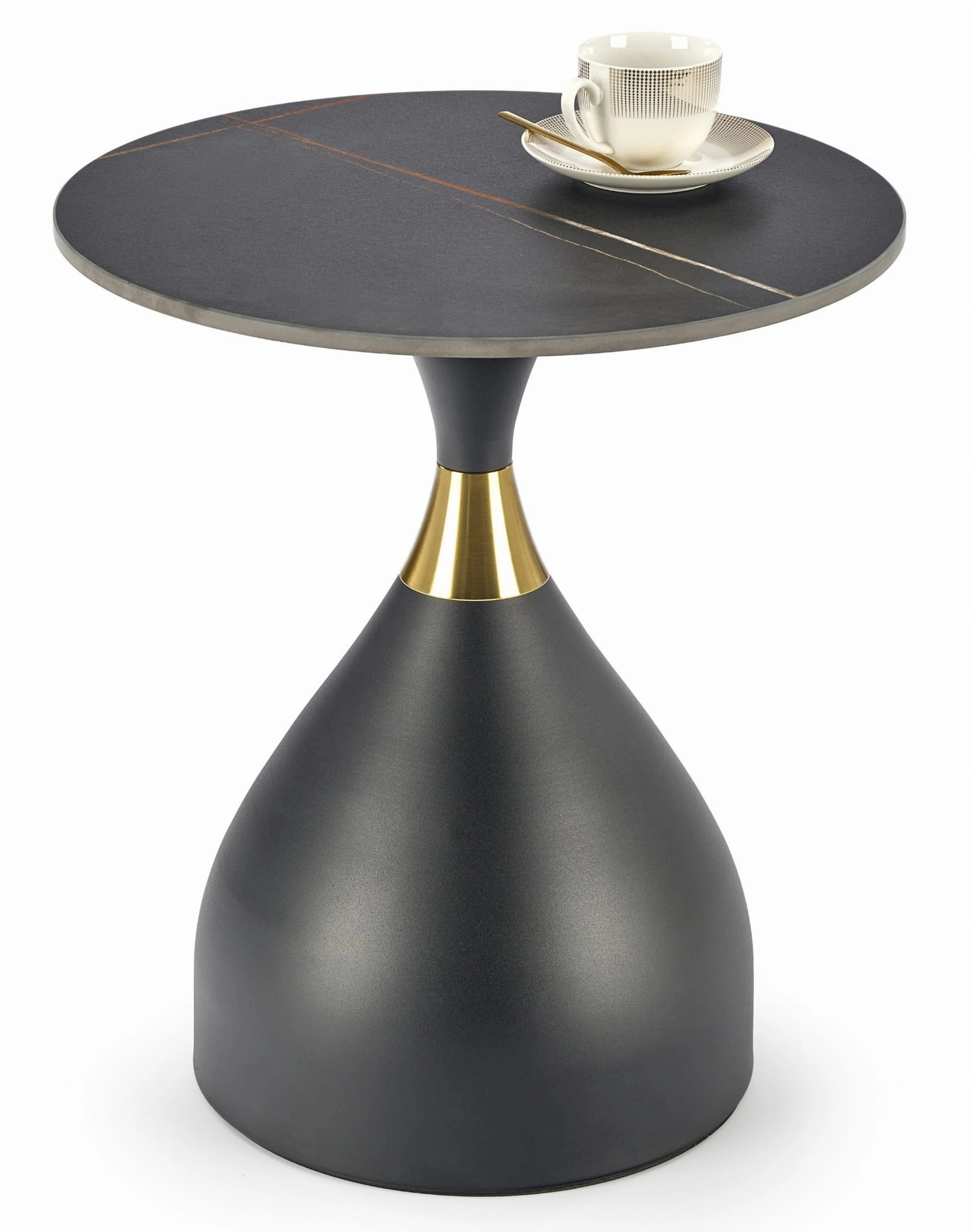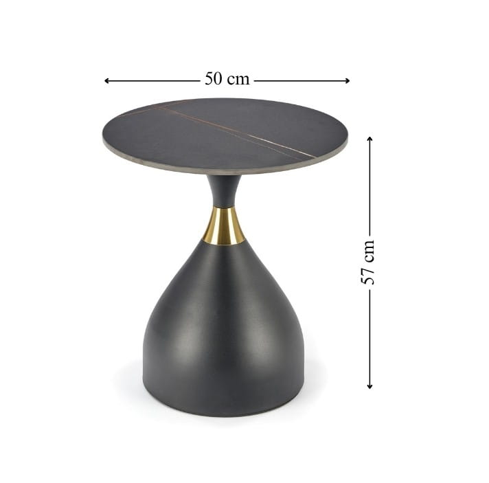 Stolik kawowy SCALITA czarny marmur to niezwykle elegancki i stylowy mebel, który przyciąga wzrok od pierwszego spojrzenia. Połączenie ceramicznego blatu w kolorze czarnego marmuru z metalowym stelażem tworzy nowoczesną i luksusową formę. Ten okrągły stolik pomocniczy będzie idealnym dodatkiem do przestrzeni wymagających wyrafinowanego akcentu – zarówno w domowym salonie, jak i w stylowym lobby.