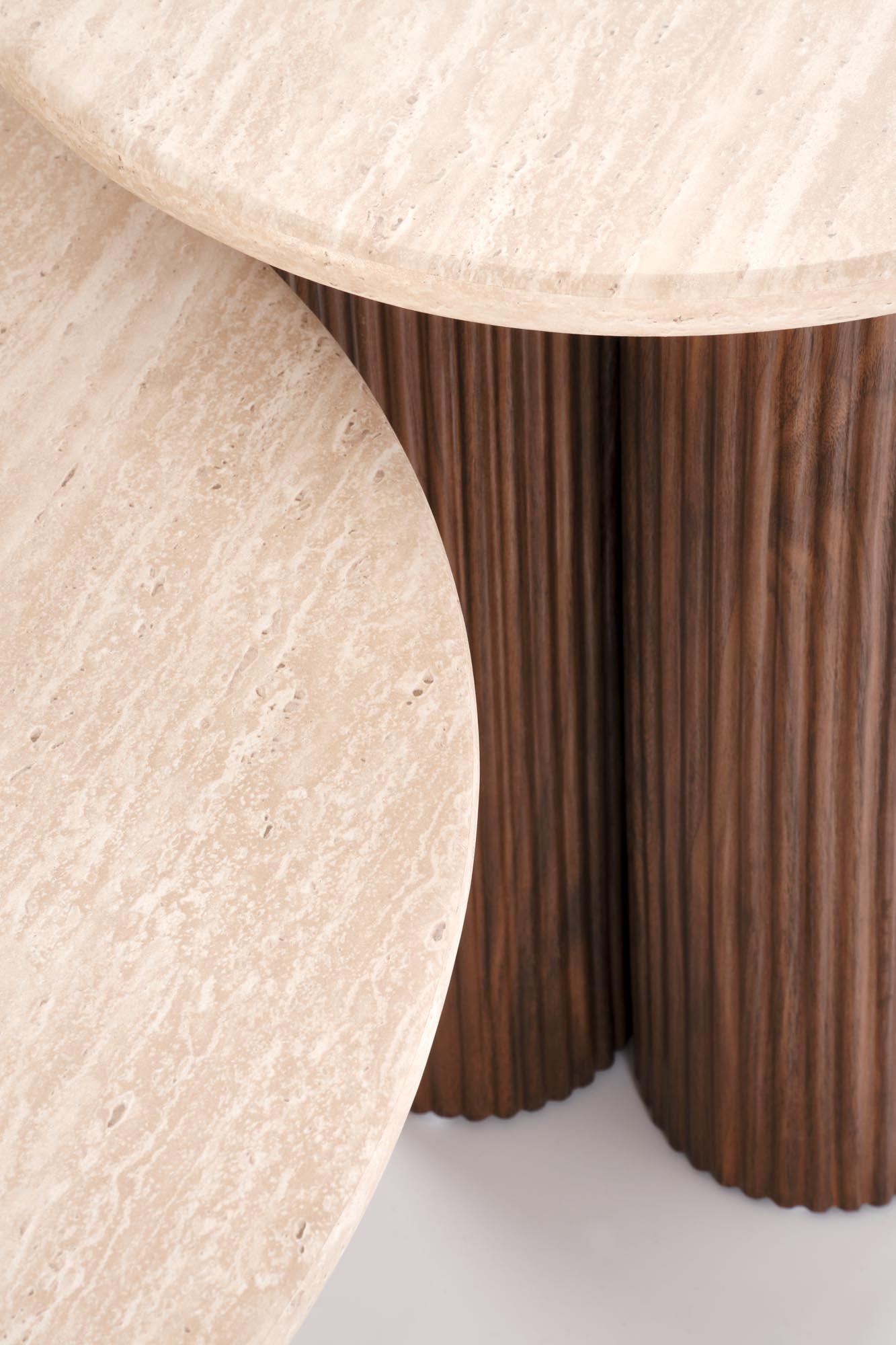 ✨Nowoczesna ława okrągła DOROTEA – trawertynowy blat i orzechowa podstawa