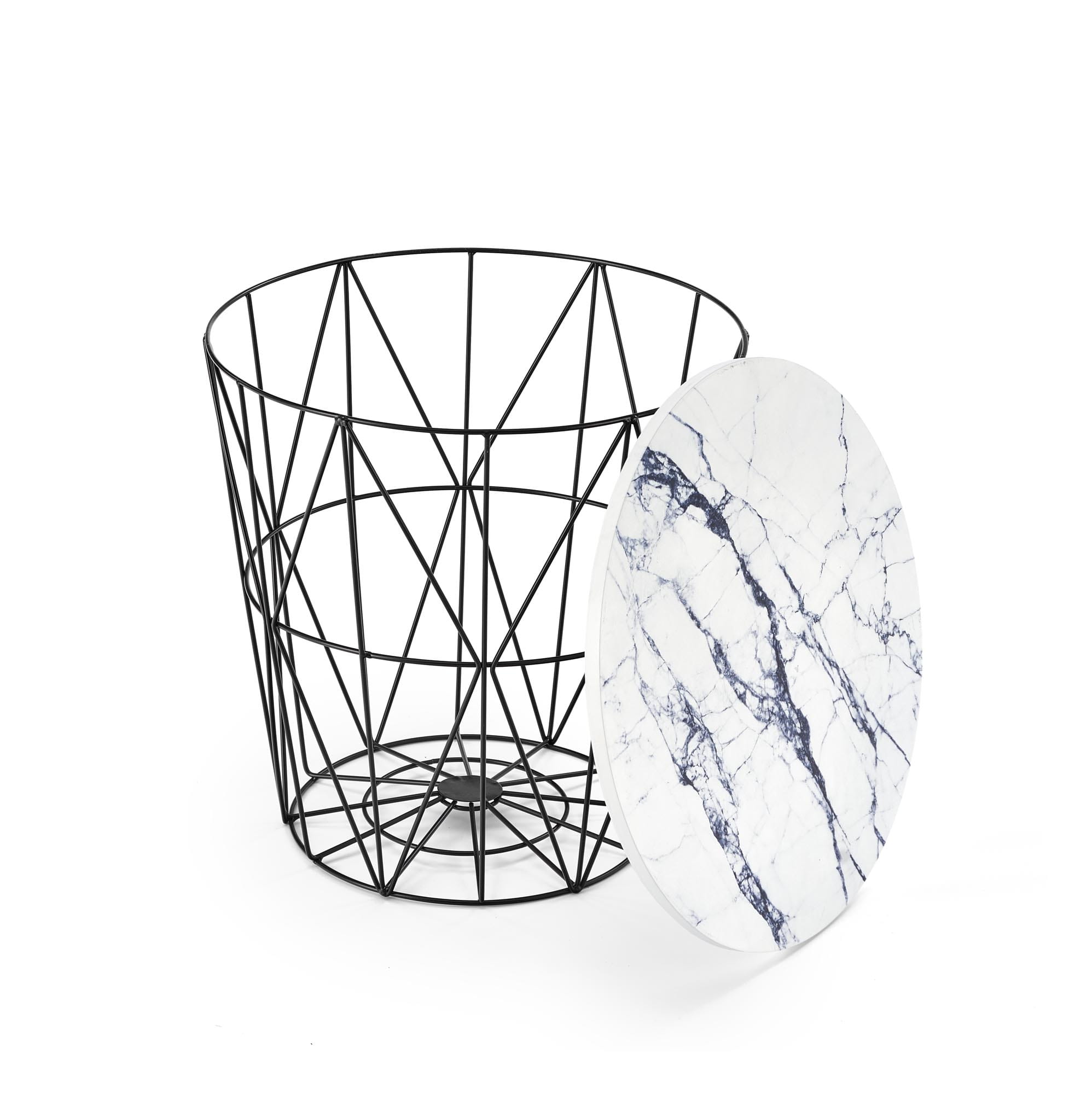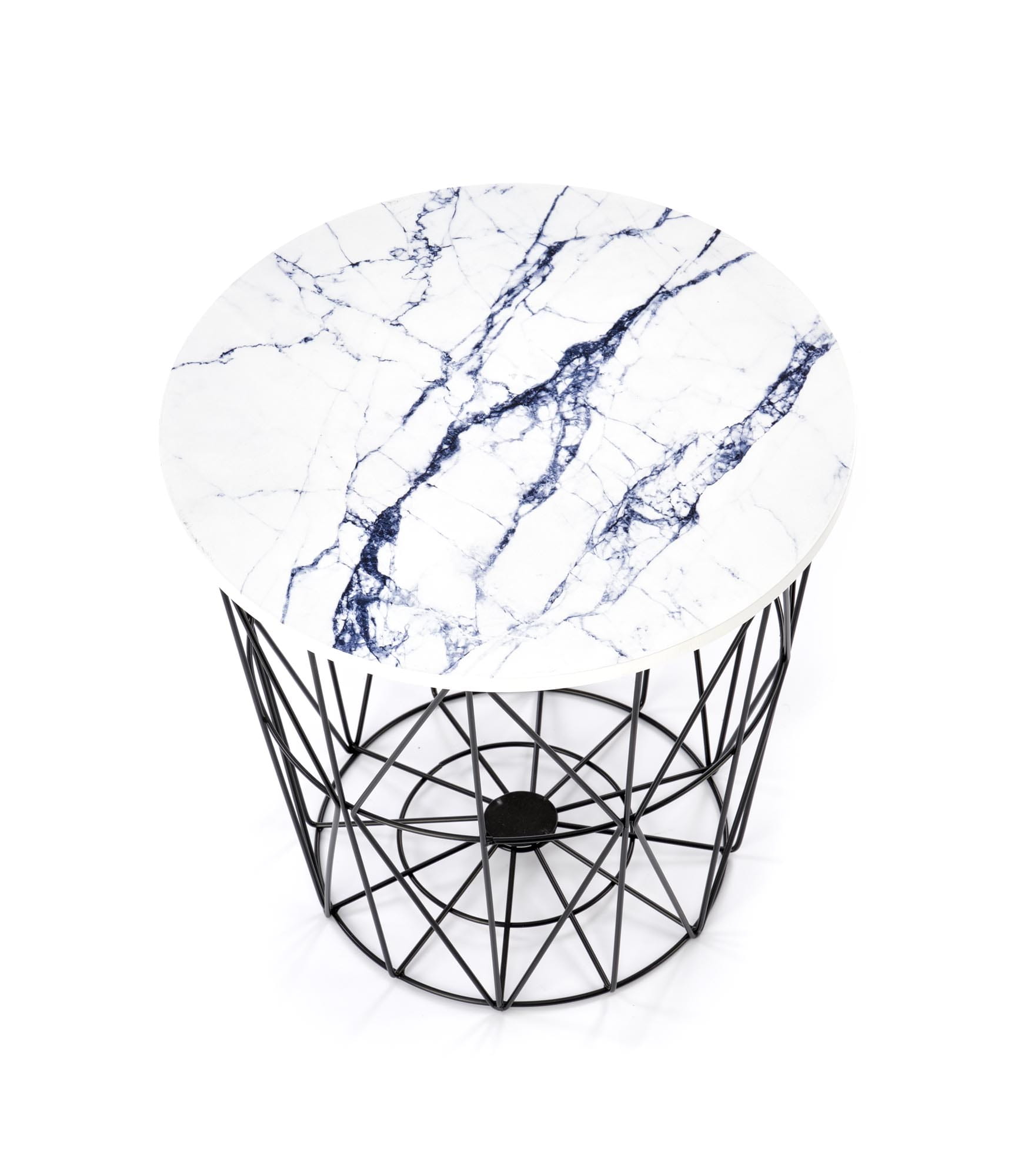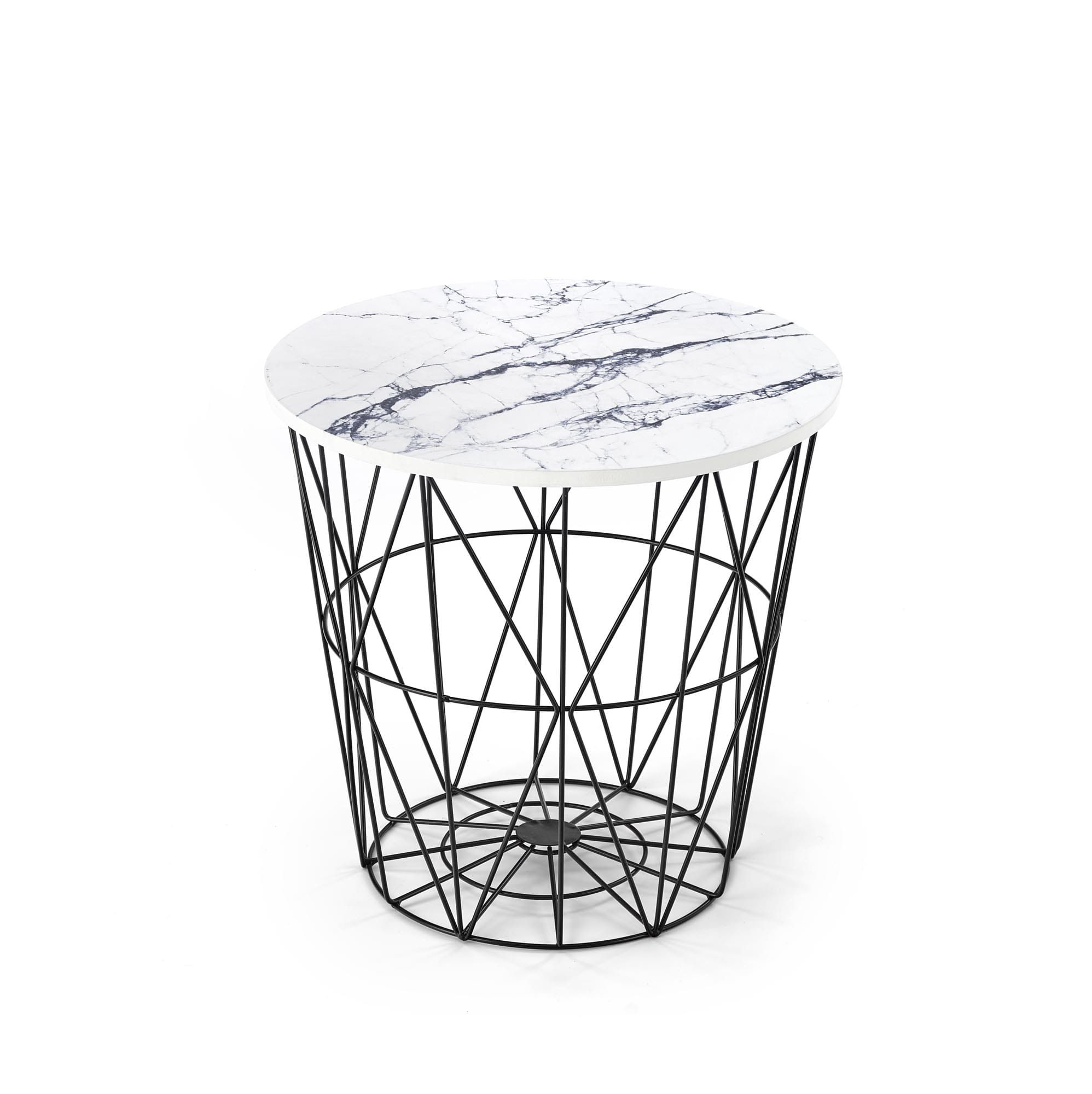 Stolik kawowy HARISSA B biały marmur czarny to designerski mebel, który doda klasy każdemu wnętrzu. Okrągły blat w wykończeniu przypominającym biały marmur w połączeniu z solidnym, czarnym stelażem ze stali malowanej proszkowo tworzy harmonijną całość, wpisującą się w najnowsze trendy aranżacyjne. Dzięki średnicy 42 cm idealnie sprawdzi się nawet w mniejszych przestrzeniach, zachowując funkcjonalność i styl.