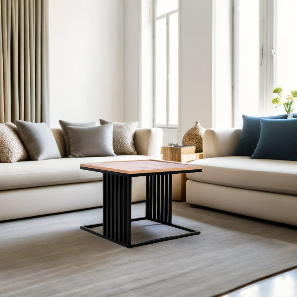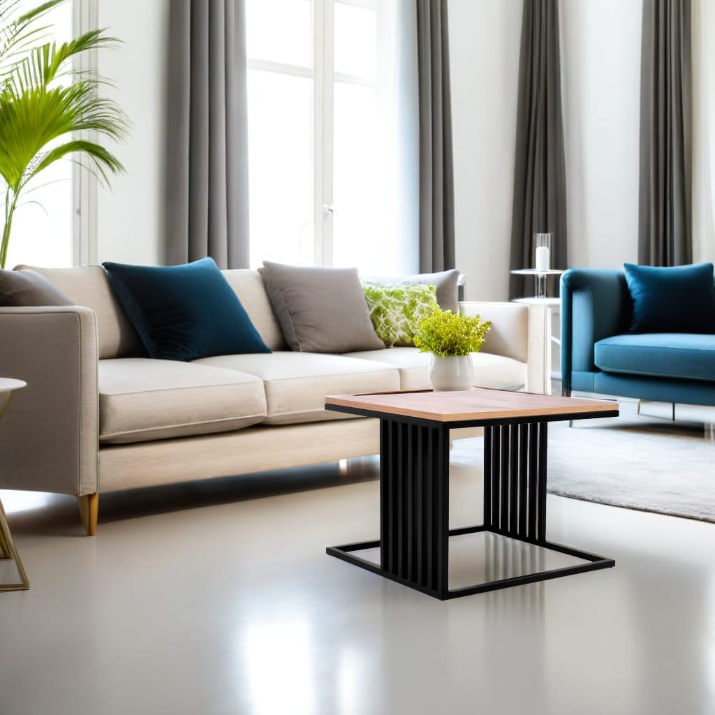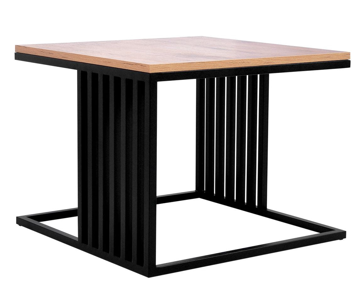 ✨Stolik kawowy KS-31 dąb, czarny – kwadratowy stolik loftowy z lamelami