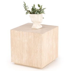 TRAVERTINO S łączy estetykę trawertynu z praktycznością stolika kwadratowego 45x45. Neutralny beż ociepla aranżację, a prosta bryła wpisuje się w stylistykę nowoczesną, japandi, skandynawską i minimalistyczną. To stolik kawowy do salonu, który nie przytłacza przestrzeni, a jednocześnie oferuje wygodną powierzchnię na kawę, książki i dekoracje.