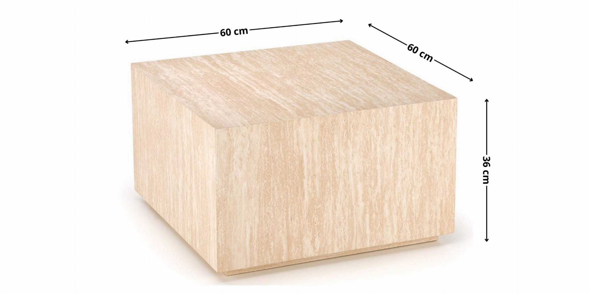 TRAVERTINO łączy naturalny wygląd trawertynu z funkcjonalnością stolika kwadratowego 60x60. Niska wysokość 36 cm sprzyja swobodnym, codziennym rytuałom – od porannej kawy po wieczorny relaks. Subtelna kolorystyka beżu ociepla aranżację, a prosta bryła doskonale współgra z meblami w stylu japandi, skandynawskim i minimalistycznym.