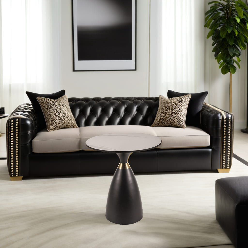 GEMINI to nowoczesny ceramiczny stolik kawowy, który świetnie sprawdzi się w roli mebla pomocniczego w salonie, biurze czy strefie relaksu. Jego okrągły biały blat wykonany z trwałej ceramiki dodaje przestrzeni elegancji, a stabilna metalowa podstawa w kolorze czarnym lub złotym podkreśla współczesny charakter mebla.