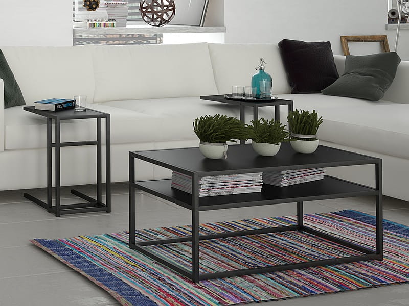 - Nowoczesny czarny design – prostokątna forma i jednolity kolor sprawiają, że to doskonały stolik kawowy w stylu loft i industrialnym