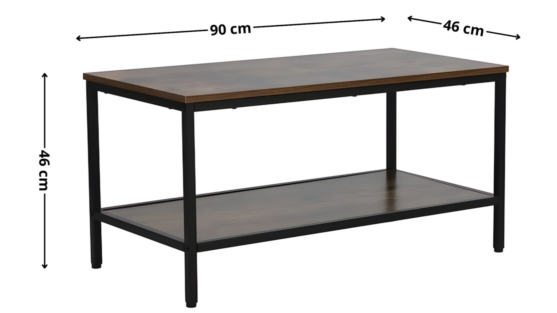 Stolik kawowy WENDY A to połączenie ciepłego, brązowego blatu o wykończeniu rustykalnym z prostym, metalowym stelażem malowanym proszkowo. Prostokątna forma o wymiarach 90 × 46 × 46 cm sprawia, że ława znakomicie sprawdza się jako stolik kawowy do salonu – zarówno przy sofie, jak i narożniku. To świetny wybór, jeśli szukasz mebla w stylu loftowym, takiego jak rustykalna ława do salonu, stolik kawowy brązowy z czarnym stelażem czy industrialny stolik kawowy na metalowych nogach.