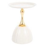 Stolik PIANA łączy w sobie nowoczesną prostotę z nutą luksusu dzięki białemu metalowemu blatowi i złotym akcentom na stelażu. To nie tylko funkcjonalny mebel, ale również wyrazisty element dekoracyjny, który dopełni każdą aranżację. Jego kompaktowe wymiary sprawiają, że świetnie odnajdzie się zarówno w przestronnych salonach, jak i niewielkich mieszkaniach.