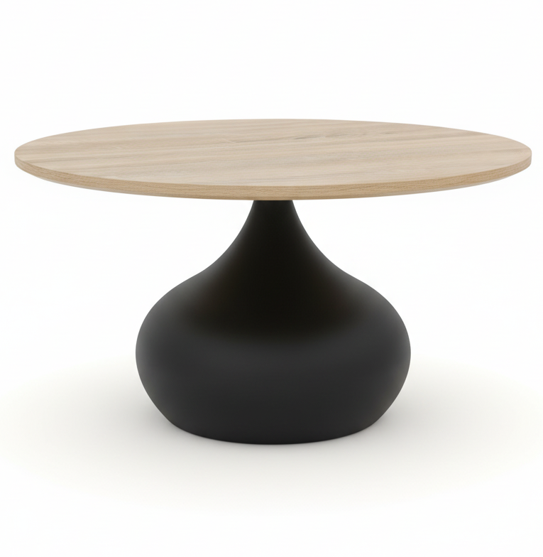 ✨ Stolik kawowy ROSA dąb sonoma – okrągły blat 70 cm i czarna podstawa